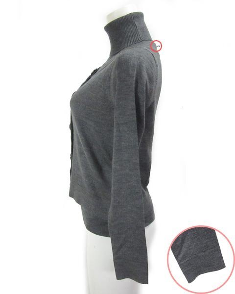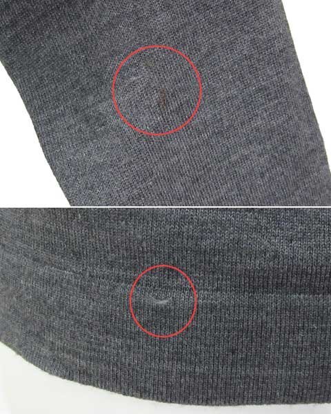 | コンディション | カーディガンネック後ろに引っかけ、左袖に汚れ、左サイド裾に毛羽立ち ニット後ろ裾に小さなひっかけや素材特有の毛羽立ち |