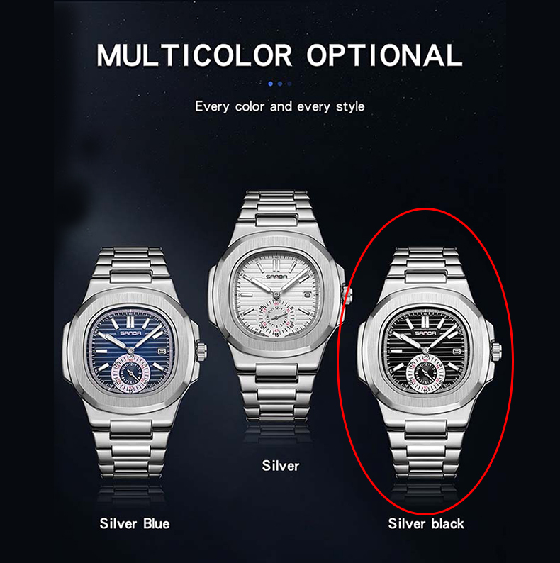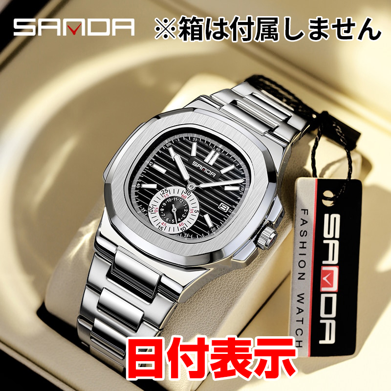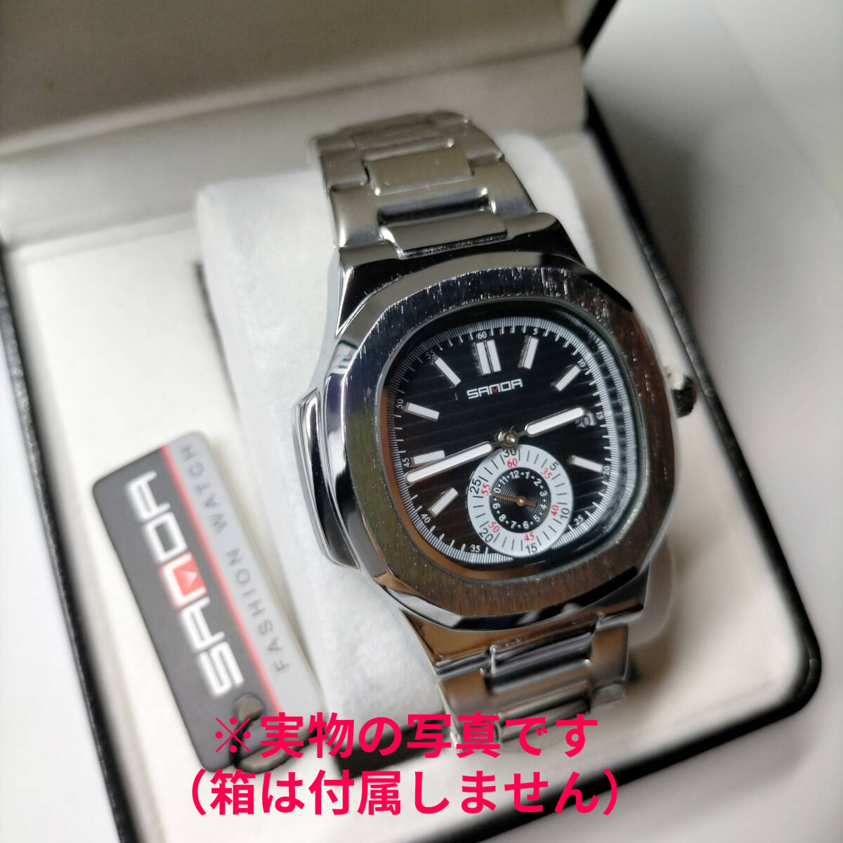 メンズ腕時計 シルバー×ブラック ステンレス (パテック・フィリップ ノーチラスではありません)カレンダー日付 SD