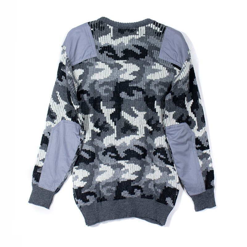 イタリア軍より全面にアーバンカモフラージュ柄が施されたセーターが入荷致しました。 同系色の補強生地が肩と肘に付いています。カモフラージュ柄のセーターとなるとウッドランドなど無骨でコーディネートの幅が狭い印象ですが、こちらはブラック×グレー×ホワイトで構成されたアーバンカモフラージュ。アメカジからシックなモノトーンまで様々なコーディネートに対応してくれます。写真は流用です。 素材:アクリル60%×ウール30%×その他10% 状態:デッドストック L 身幅51cm/肩幅52cm/着丈74cm/袖丈59cm XL身幅53cm/肩幅54cm/着丈78cm/袖丈62cm 沖縄離島を除く全国500円でお送りいたします、落札価格にプラスでお願いいたします。