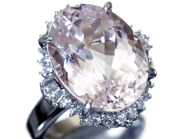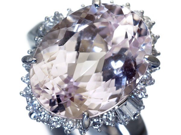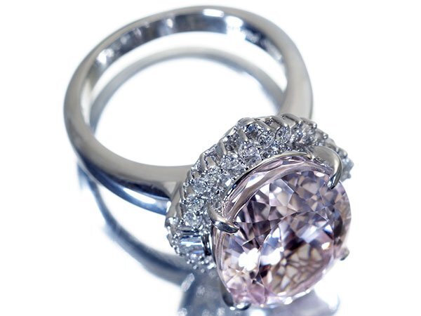 超希少宝石の超大粒良質天然クンツァイト13.07ct&良質ダイヤモンド総計0.55ctを素敵に宝飾した、超高級Pt900リングを1円から特別大放出致します!
