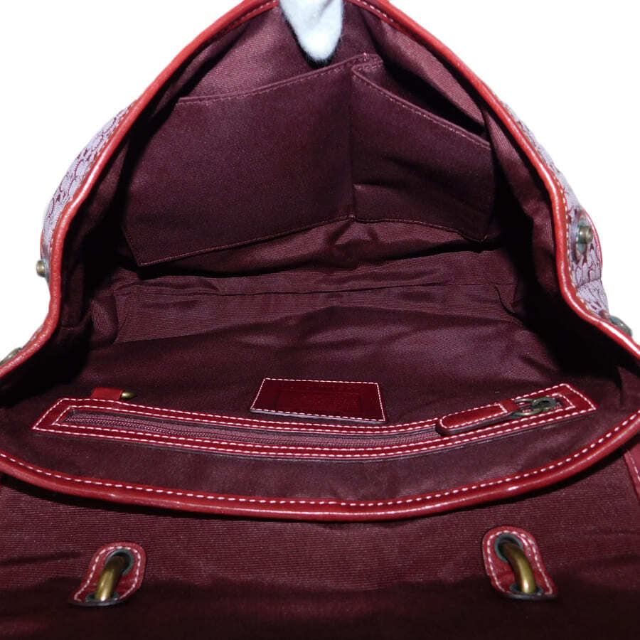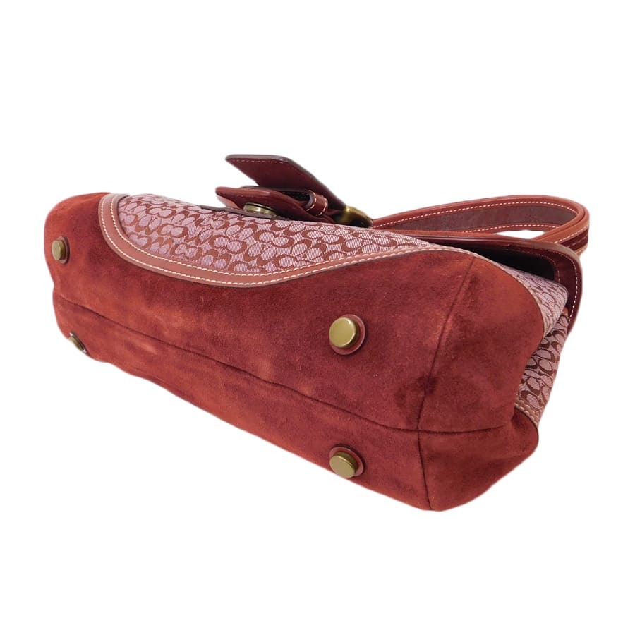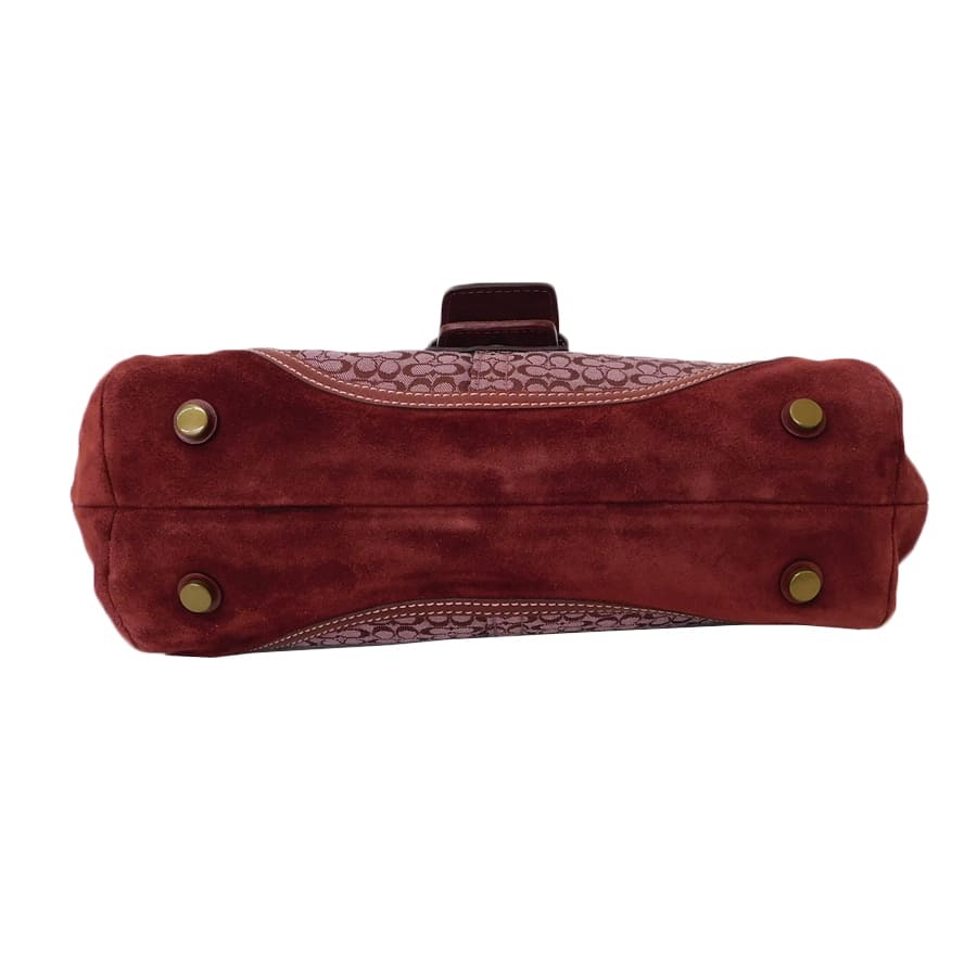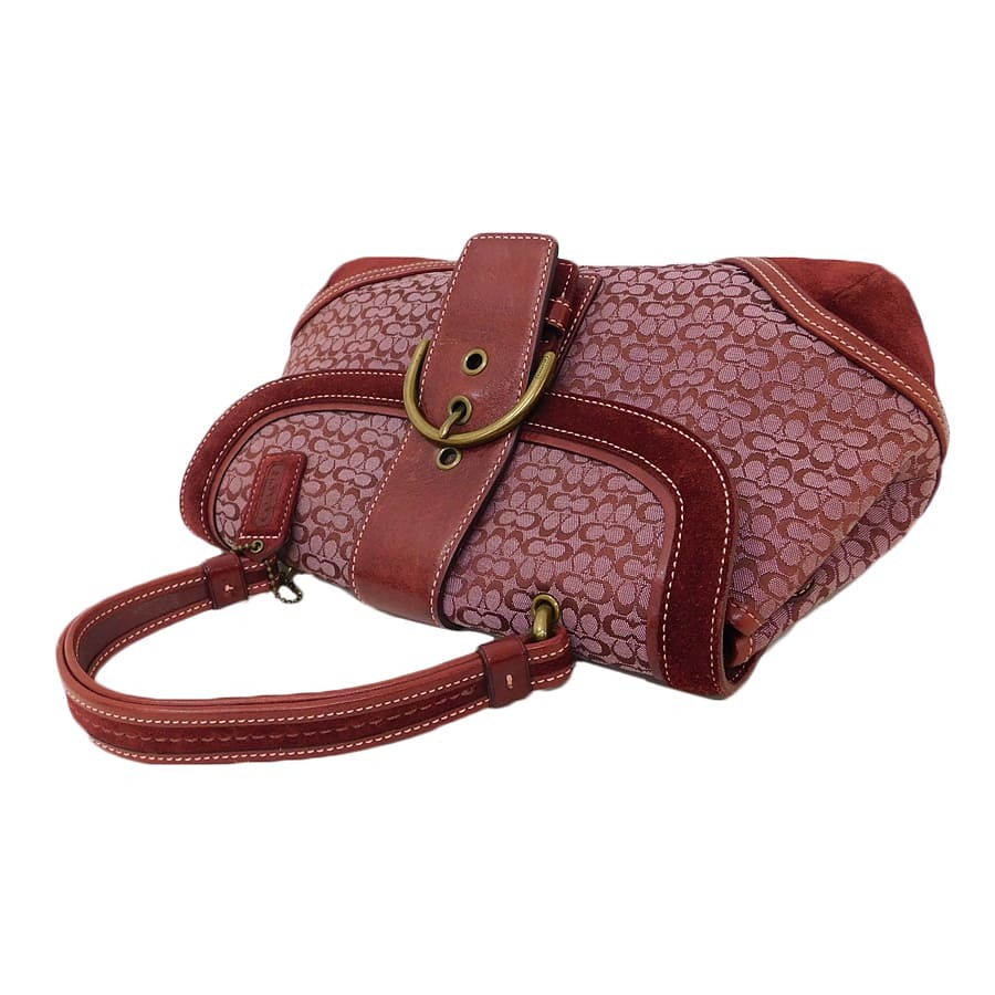 1円■美品/コーチ/ハンドバッグ/7078/ミニシグネチャー/レッド系/キャンバス×スエード/女性/COACH ■E.Blg.zE-19[中古]
