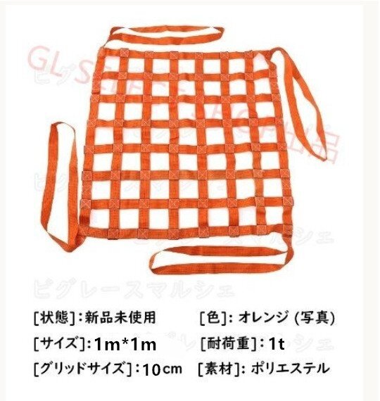 (A93)実用品★吊に荷 特殊型 モッコ型 ベルトスリング スリングベルト 1m×m マス目10cm ポリエステル製 使用荷重1t