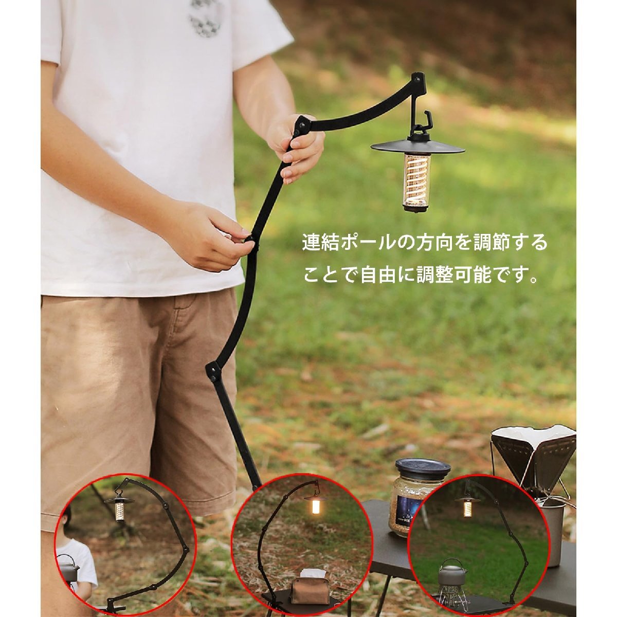 【調整可能のランタンスタンド】4本のフレームの連結はギア式でしっかり固定できます。連結ポールの方向を変わってスタンドの形を自由に調整可能です。