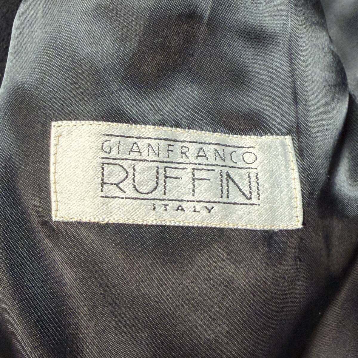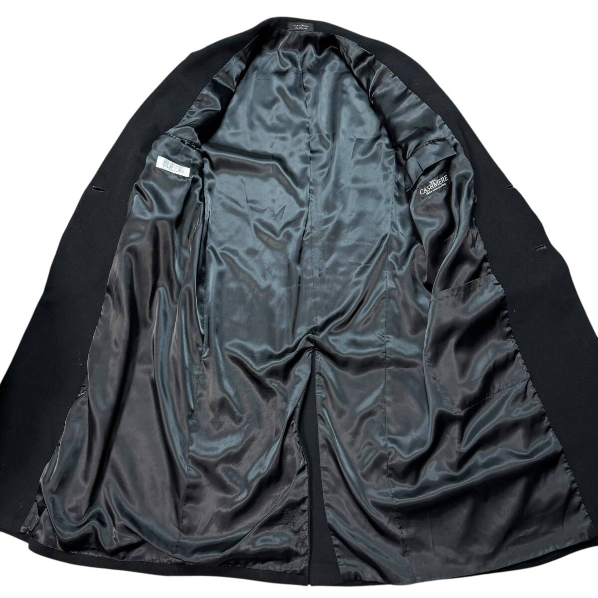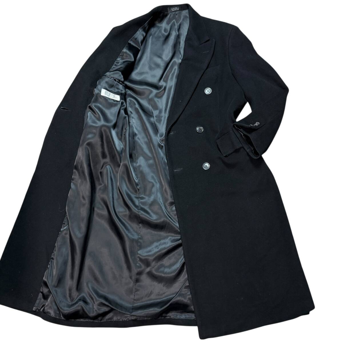 3785 美品●XL相当 GIANFRANCO RUFFINI ジャンフランコラフィーニ カシミヤ100% チェスターコート ダブル マキシ丈 117cm ブラック 黒