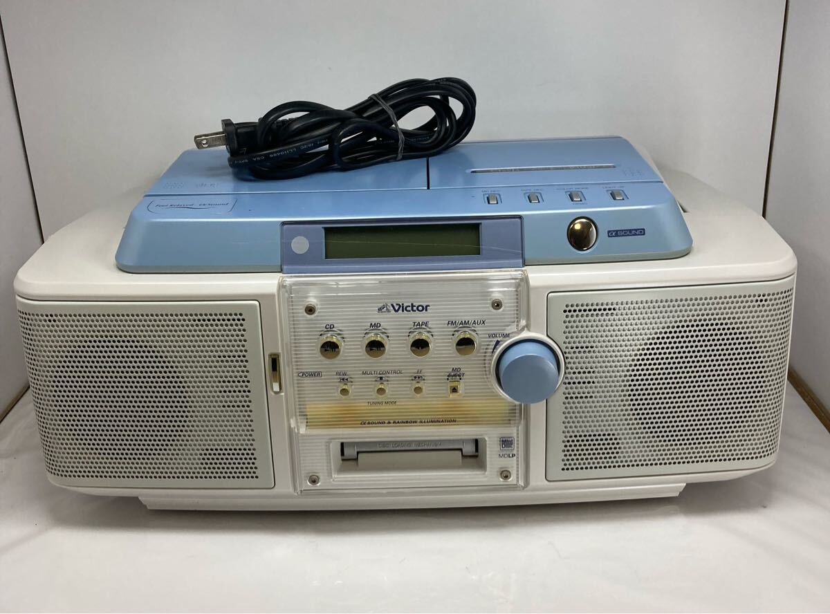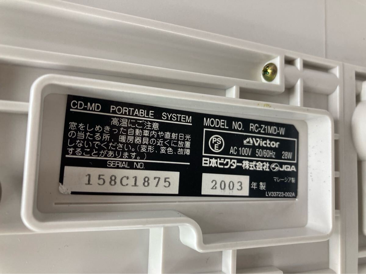 ジャンク:Victor RC-Z1MD ホワイト CD MD カセット AM FM ラジカセ