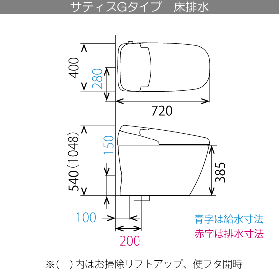 ・床排水: 排水芯は便器後方、壁面より200mmタイプですのでご注意下さい。