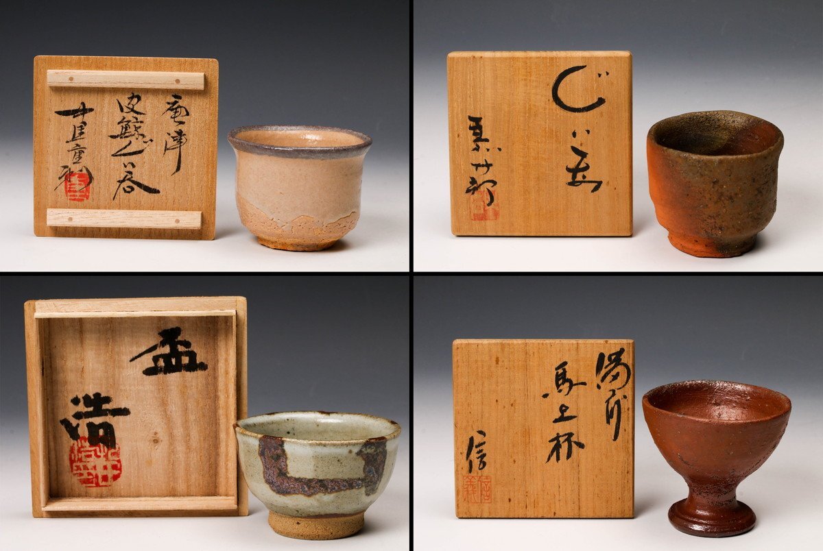 【佳香】中里重利 末石泰節 村田浩 柴岡信義 ぐい呑 四点セット 共箱 本物保証