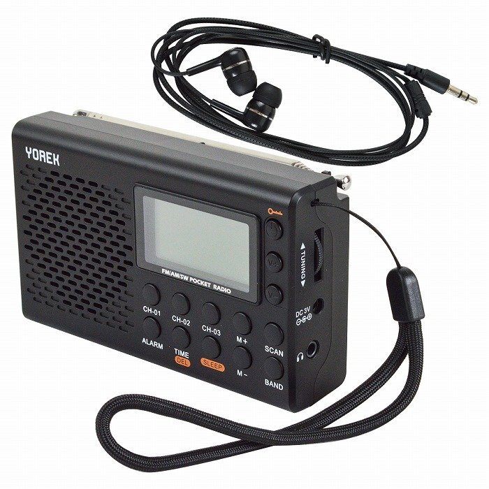【送料無料】携帯 防災 ラジオ 単三電池 高感度 AM FM ポケットラジオ ポータブル 災害 地震 洪水 台風 避難 イヤホン DC端子 黒 ブラック