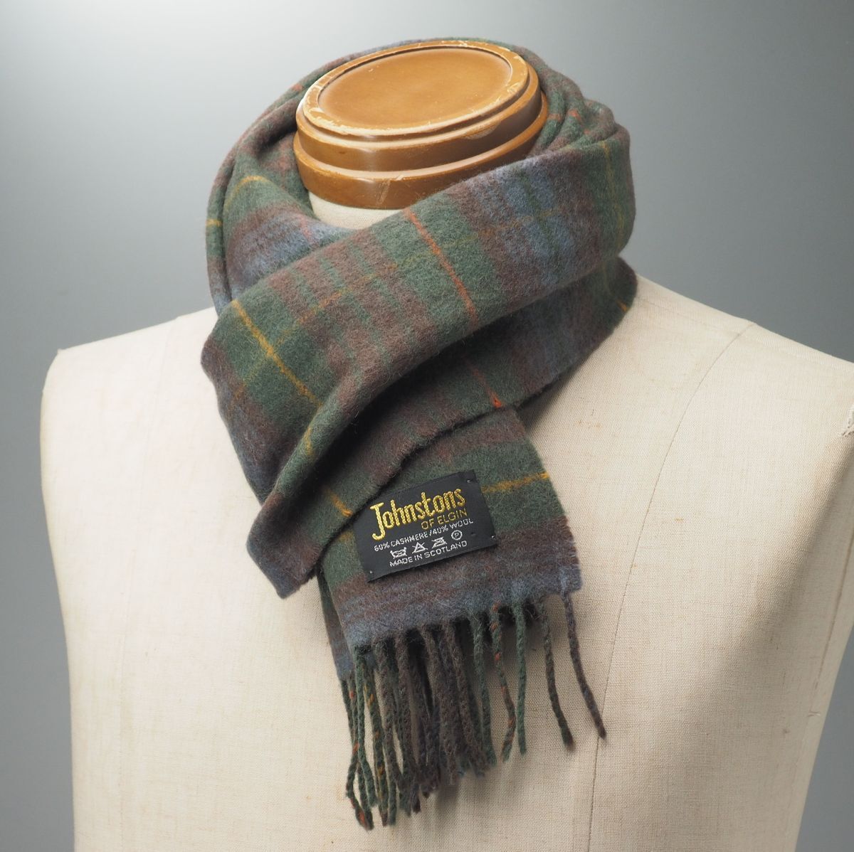 | TJ7076◎スコットランド製 Johnstons of Elgin ジョンストンズ オブエルガン カシミヤウール マフラー ストール ショール チェック柄 | |||