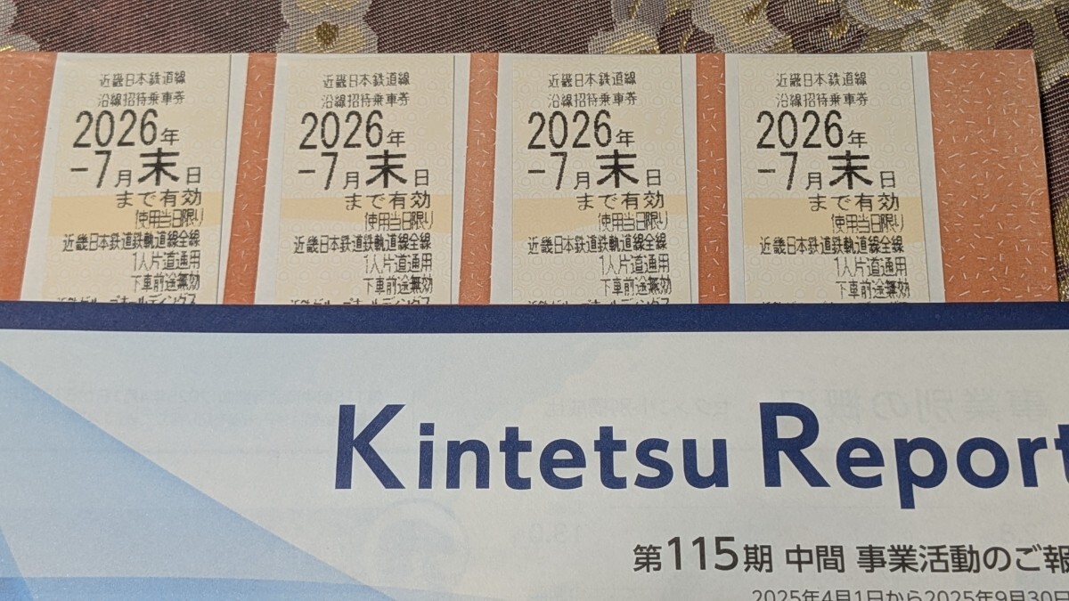 近鉄沿線招待乗車券4枚です(2026年7月末迄)