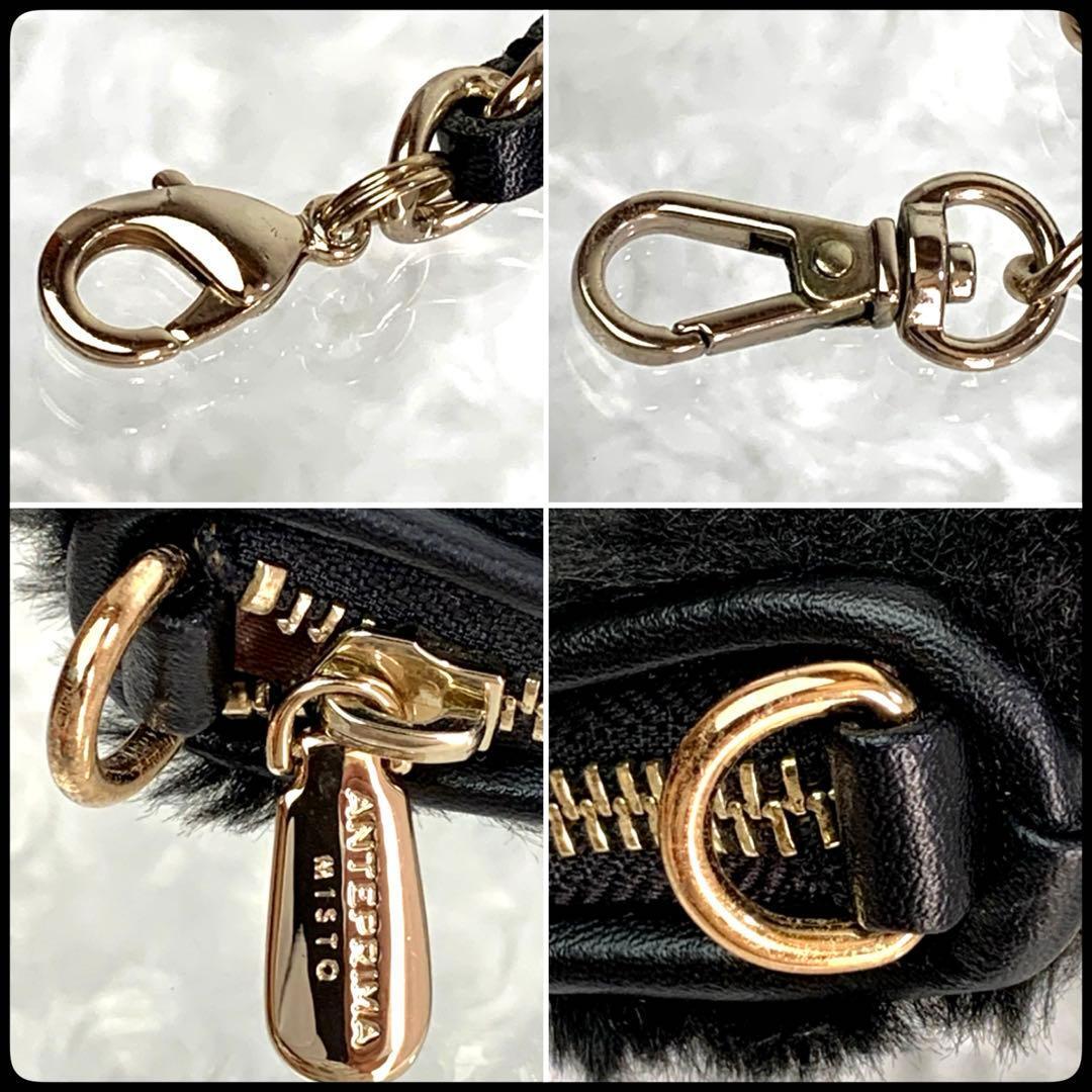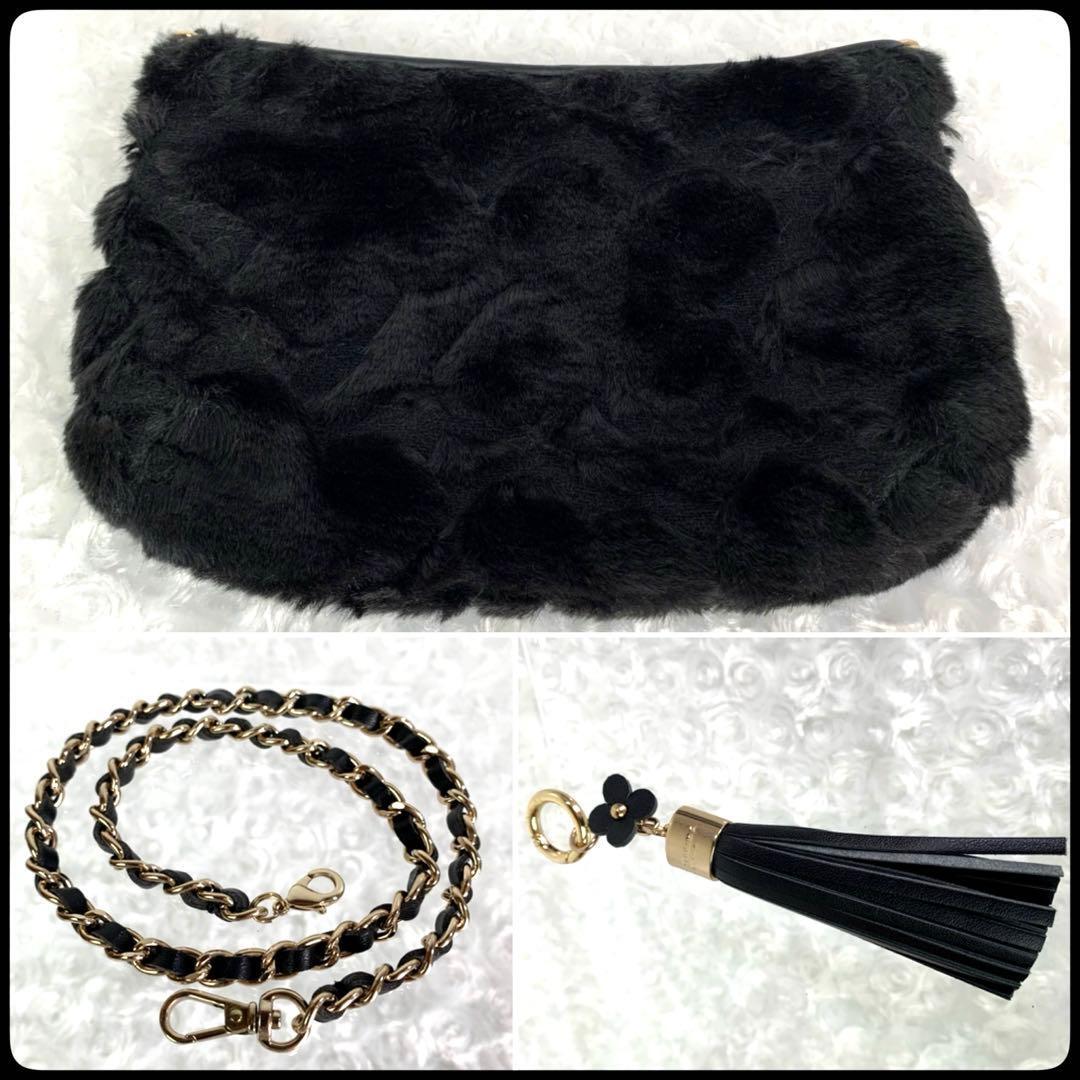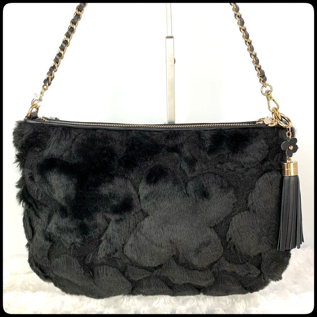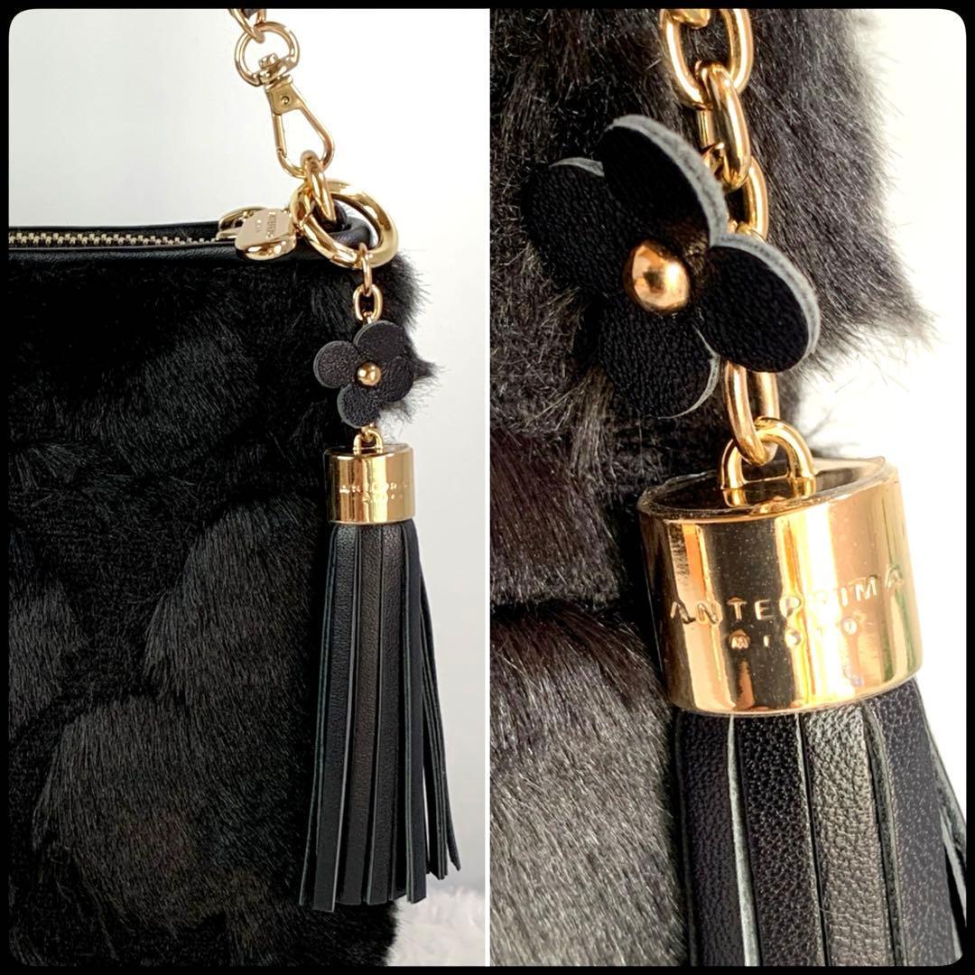 ANTEPRIMA (アンテプリマ) ファー 花柄 チェーンショルダー クラッチ 2WAY ブラック レディース