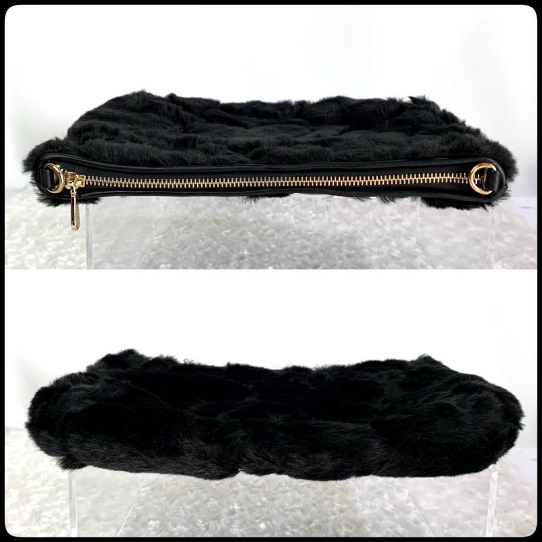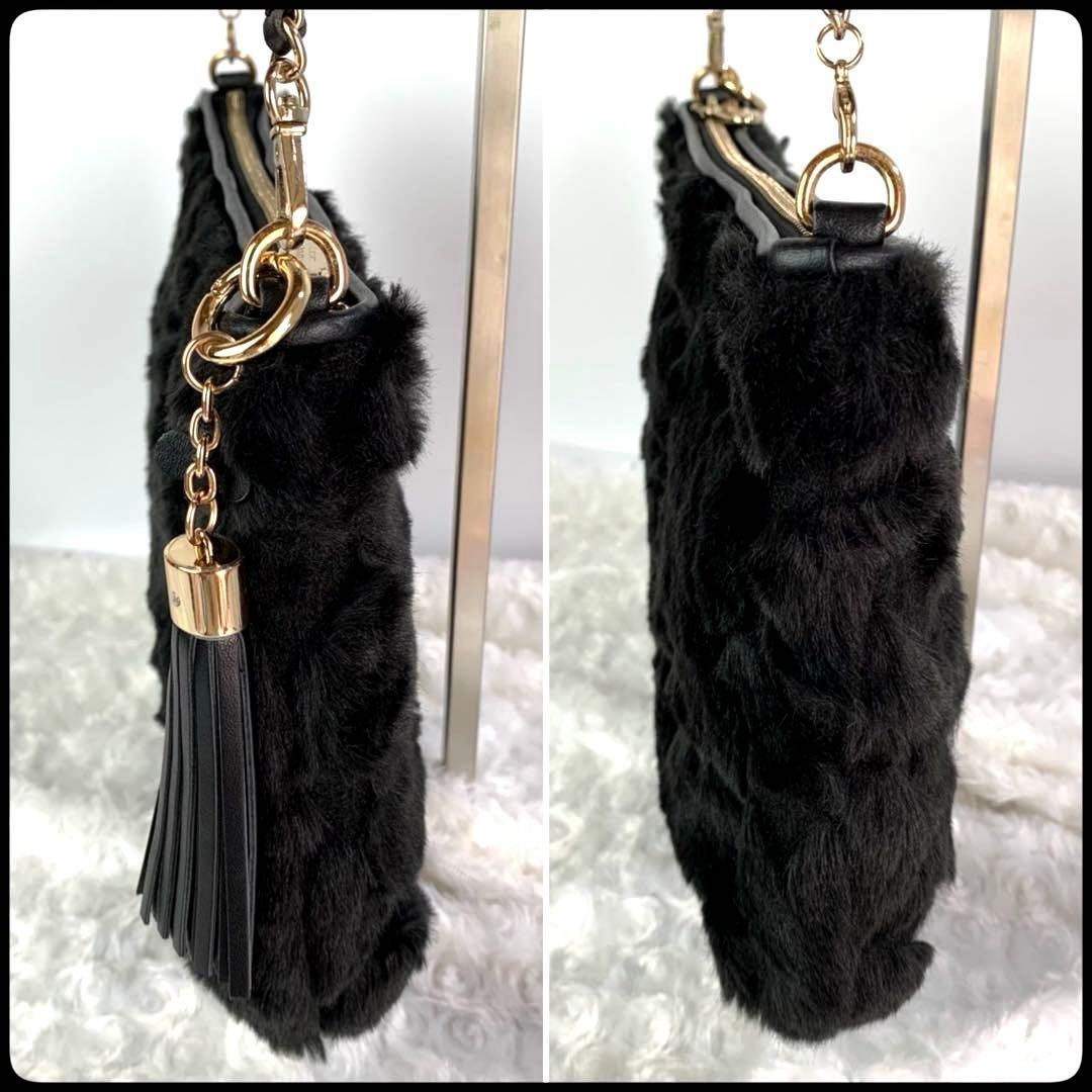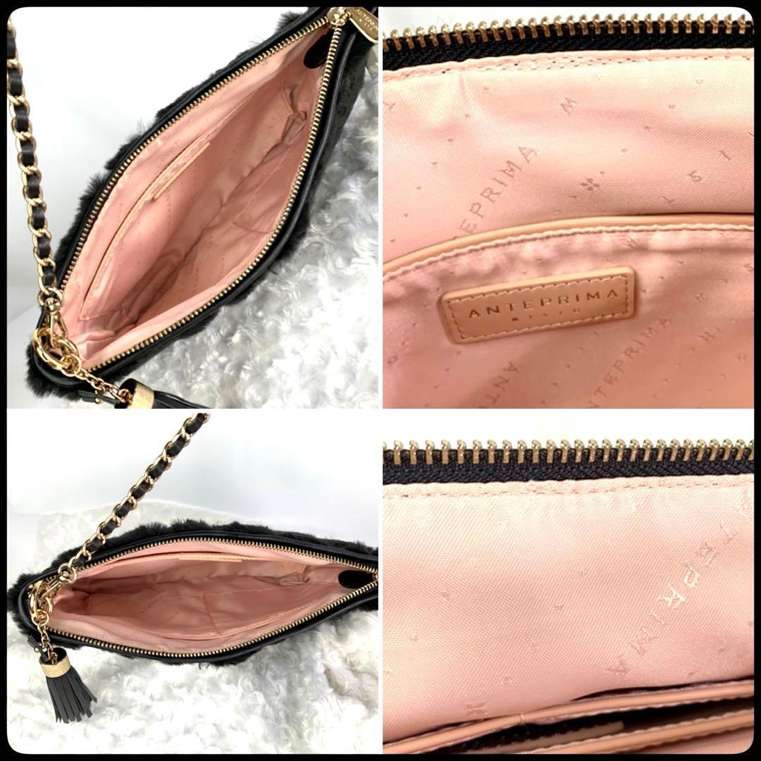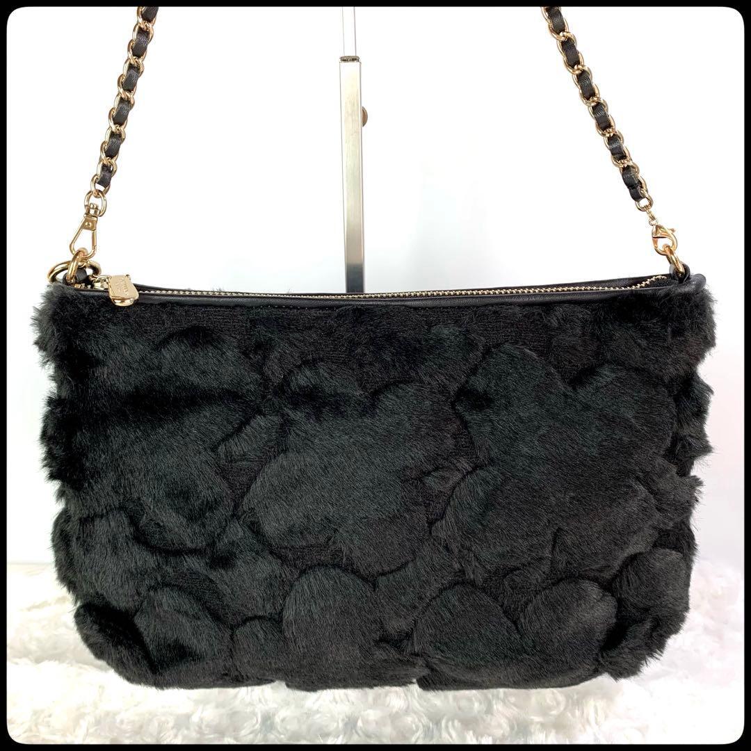 ANTEPRIMA (アンテプリマ) ファー 花柄 チェーンショルダー クラッチ 2WAY ブラック レディース