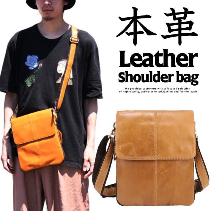 ショルダーバッグ メンズ レディース サコッシュ バッグ 本革 本皮 レザー GENUINE LEATHER ギフト 7987380 キャメル 新品 1円 スタート