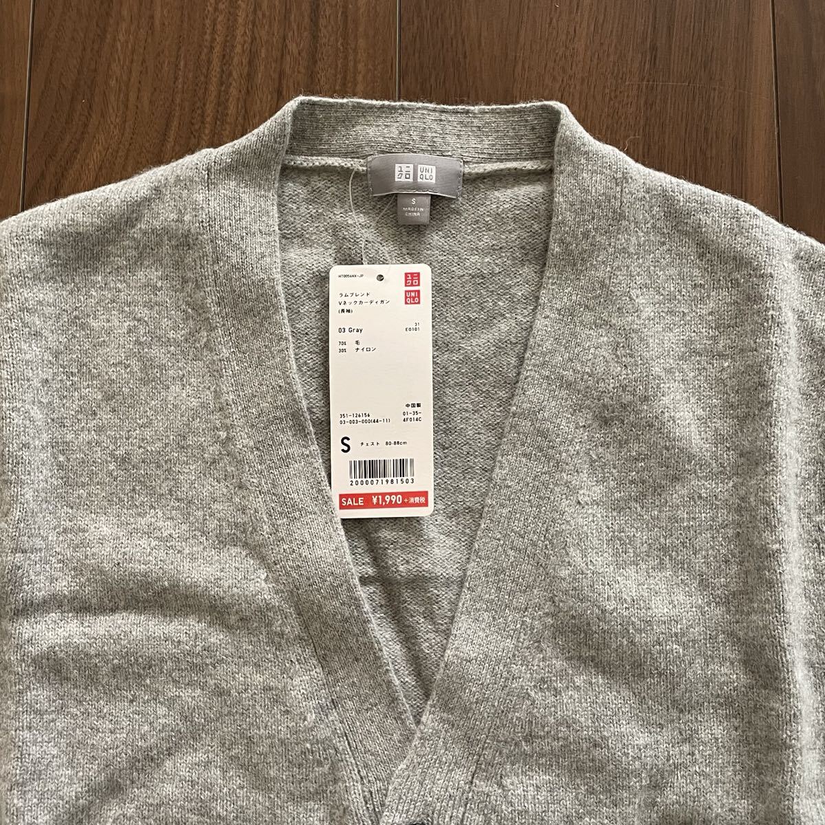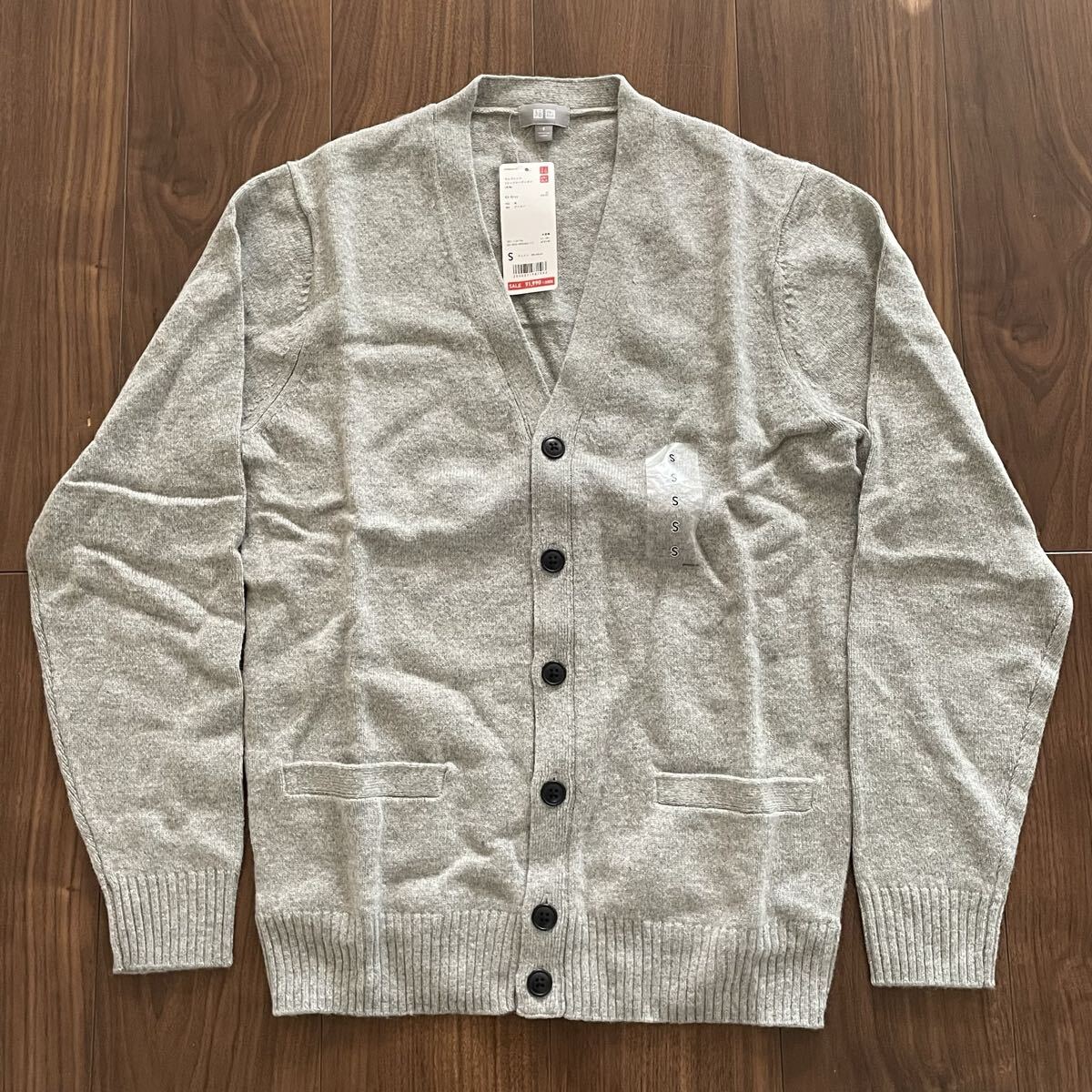 ☆未使用☆UNIQLO ユニクロ☆ラムブレンド Vネックカーディガン(長袖)☆Sサイズ☆03/Gray/グレー☆メンズ