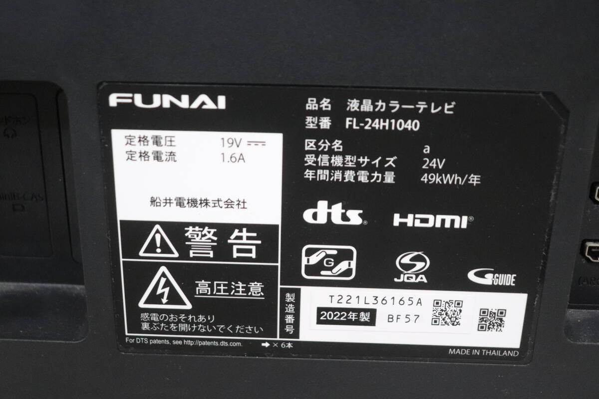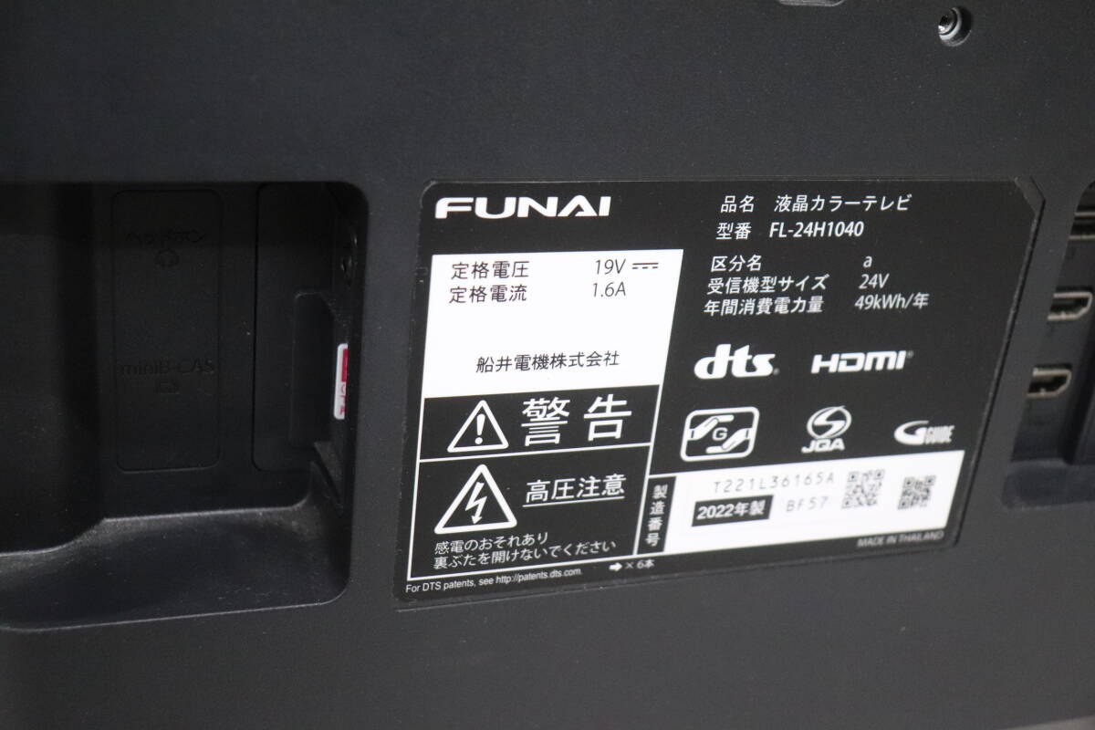 Y14/E14 FUNAI フナイ FL-24H1040 24型 液晶 テレビ 2022年製 地上デジタル放送視聴可能 | |||