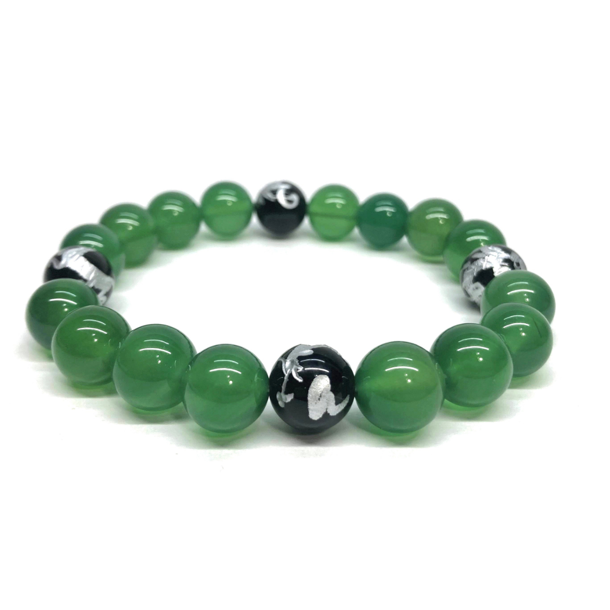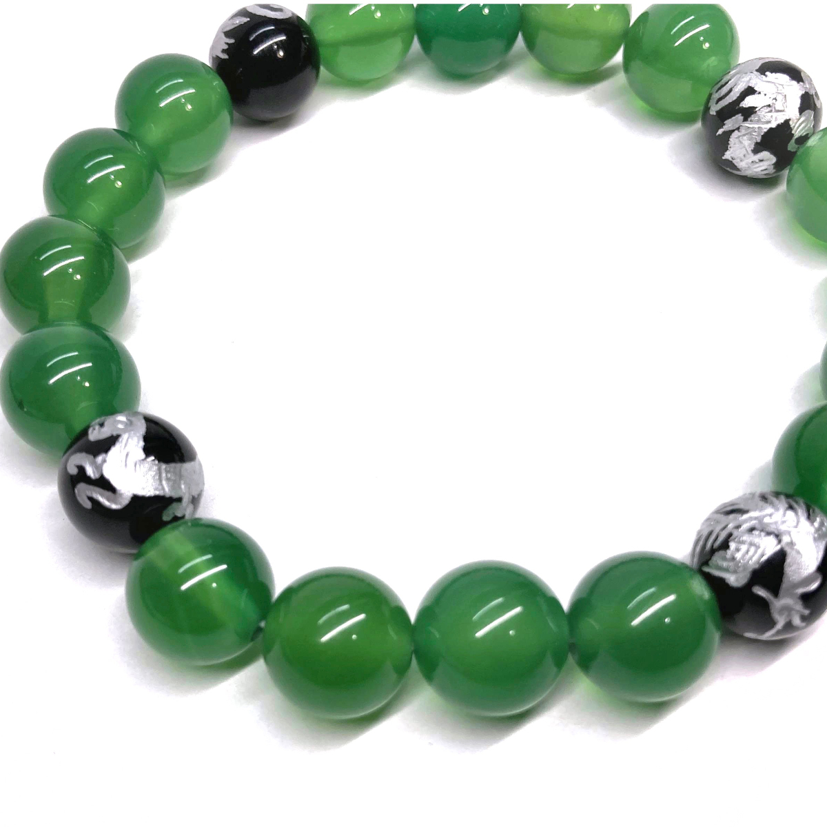 10mm 四神獣銀彫オニキス×緑瑪瑙 パワーストーン ブレスレット天然石 運気上昇 開運 金運 恋愛運 青龍 白虎 玄武 朱雀 シンプル ☆