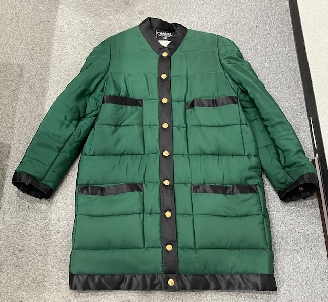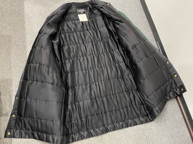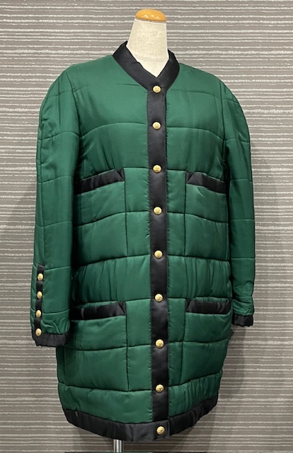 | シャネル CHANEL A1 21356 ヴィンテージ ココスナップボタン 中綿ロングコート バイカラー グリーン×ブラック サイズ42 USED品 |
