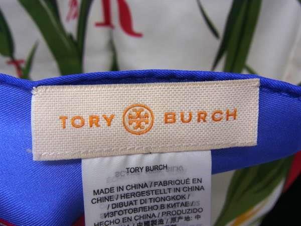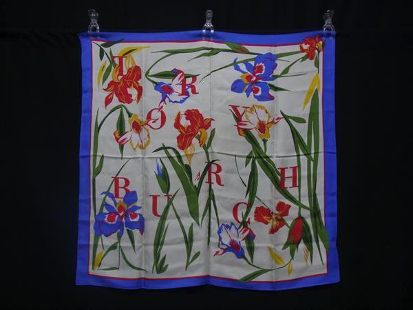 ■美品■ TORY BURCH トリーバーチ シルク100% フラワー 花柄 スカーフ ストール ショール レディース ブルー系×マルチカラー DJ1641