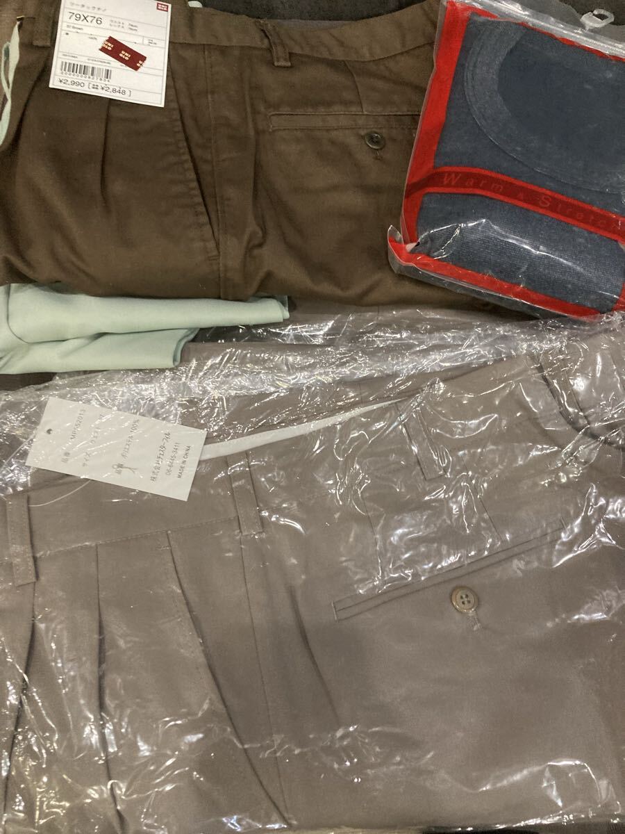 42【まとめ売り】メンズ用品まとめ カーゴパンツ チノパン ワークパンツ 裏起毛丸首シャツ Tシャツ 靴下髭剃り スパッツ L LLサイズ 等