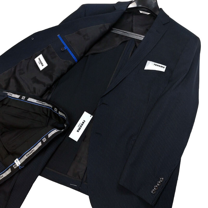 新品 renoma KB8 身長185 胴囲110~130 アジャスター機能 シングル2ボタン レノマ オールシーズン春夏秋冬 大きい ビッグサイズ 紺 5L d564