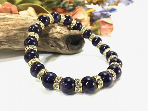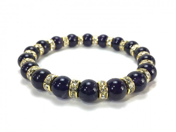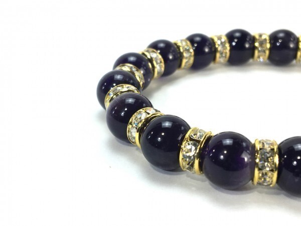 こちらは、10mm玉のアメジストを使用したパワーストーンブレスレットです。間にはロンデルを挟み高級感あるブレスレットに仕上げています。石大きさは腕にも馴染みやすいように10mm玉を使用して、サイズは内径約18cmです。(サイズ調節も無料で承っています。サイズ変更の場合は落札後、取引ナビにてご一報くださいませ。) 数に限りがございますので気になる方はお早めにどうぞ。