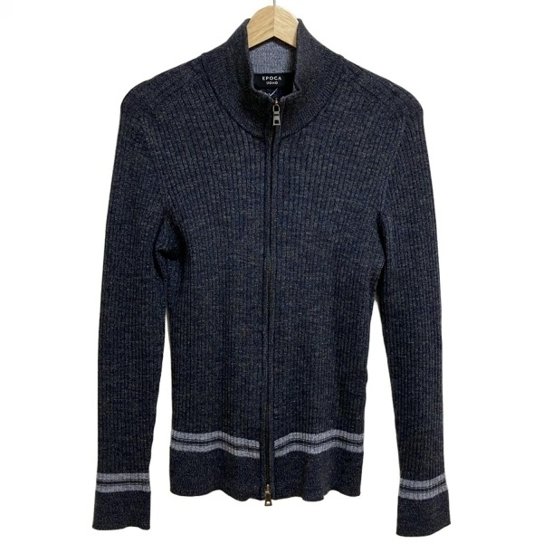 エポカ ウォモ EPOCA UOMO 長袖セーター/ニット サイズ46 XL - ダークネイビー×グレー メンズ ハイネック/ジップアップ トップス
