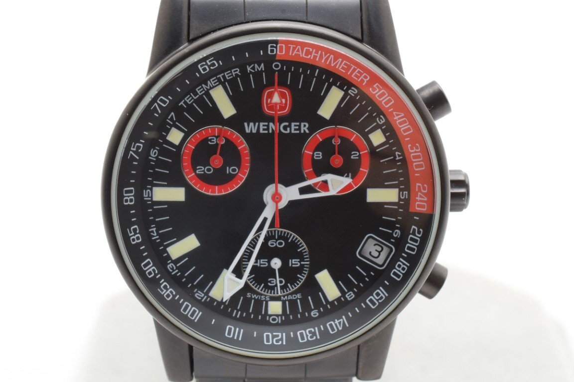 WENGER ウェンガー クォーツ ラウンド クロノグラフ 腕時計 メンズ 3針 ブラック レッド 70731