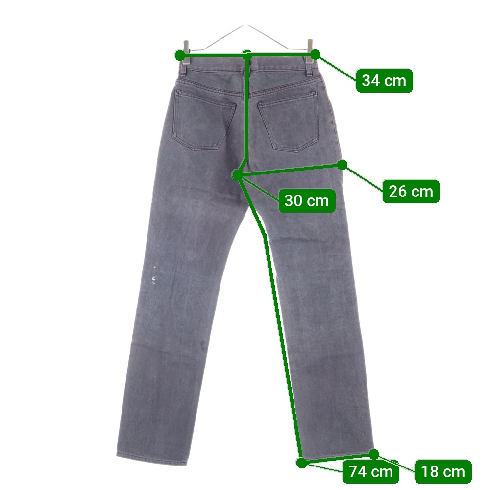 実寸 ウエスト:34センチ ワタリ:26センチ 股上:30センチ 股下:74センチ 裾幅:18センチ