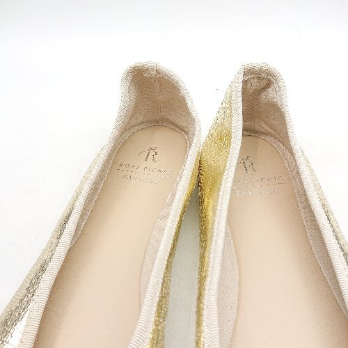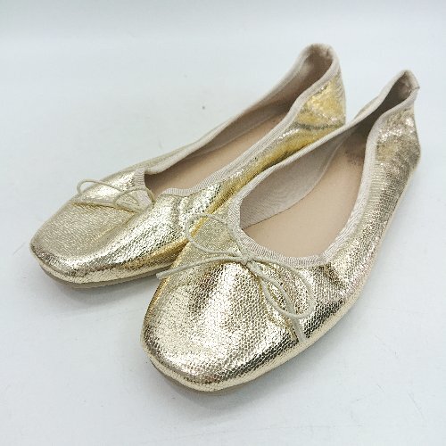 ◇ Θ ROPE PICNIC ロペピクニック リボン装飾 バレエシューズ サイズ22.5 ゴールド レディース E