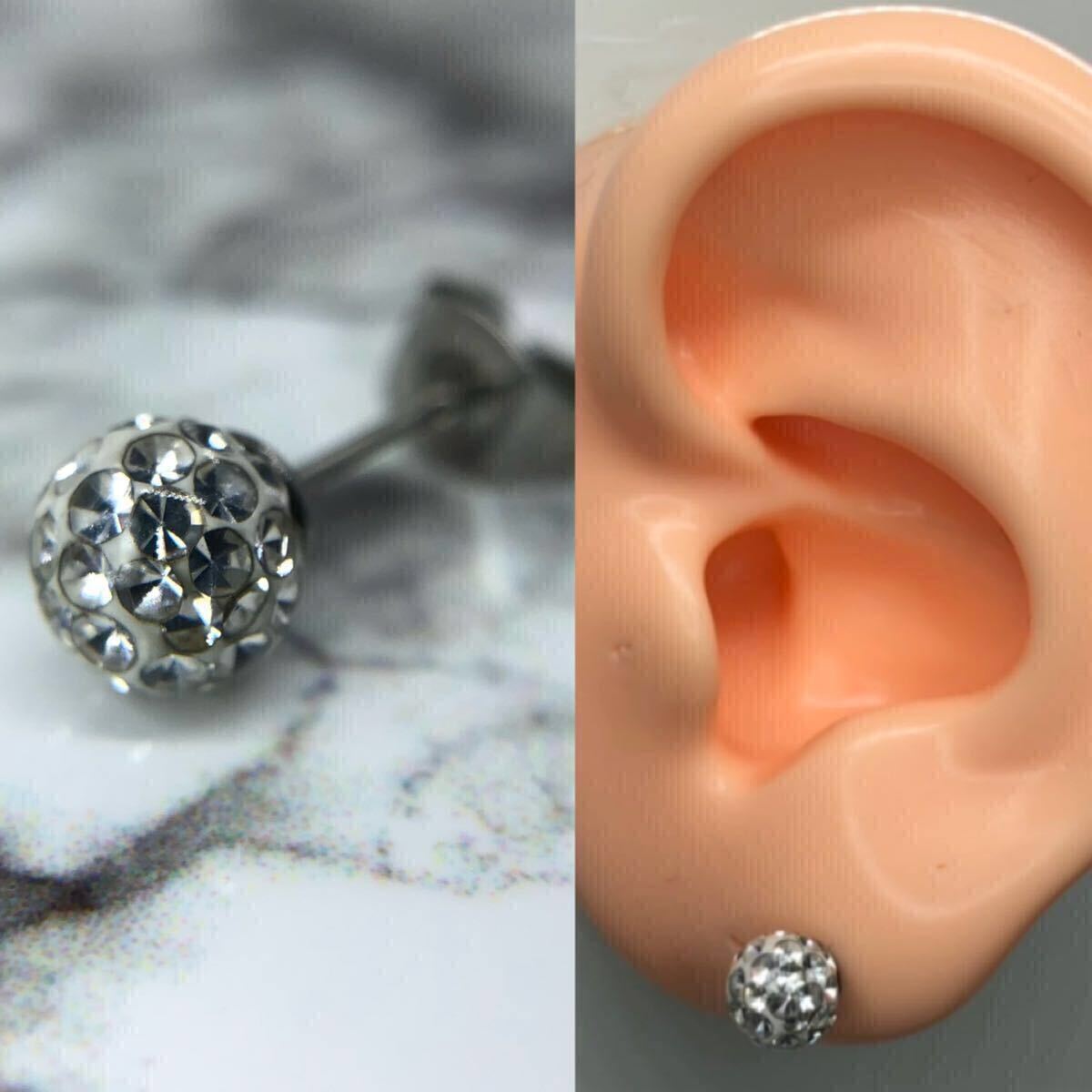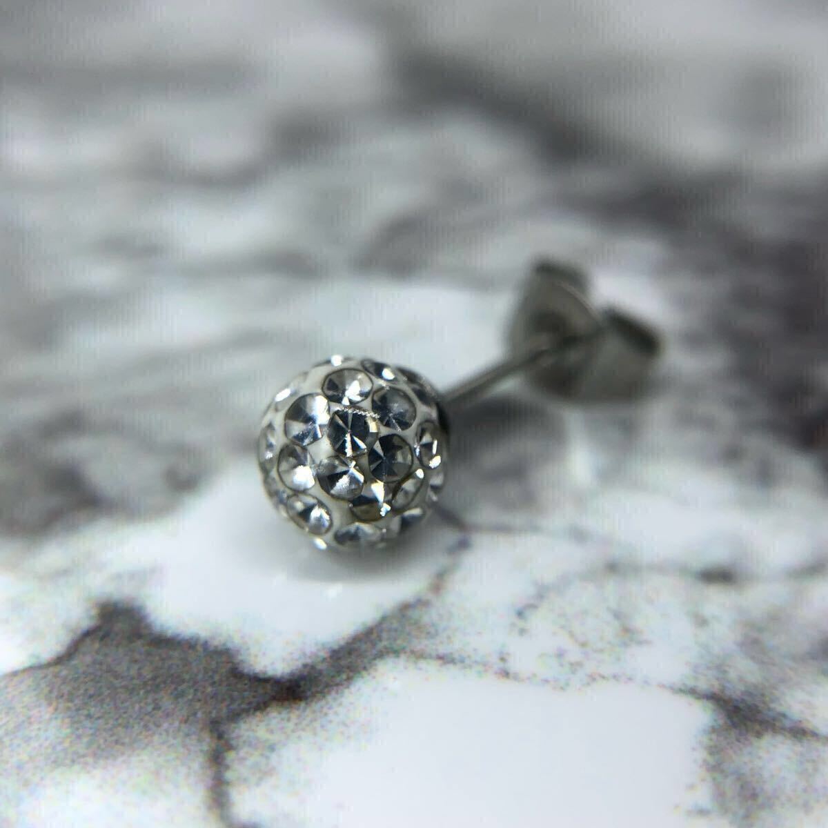 【新品】スタッド ピアス 18g ボール ジルコニア ダイア ホワイト シルバー アクセサリー 韓国 メンズ 片耳用 hiphop ブリンブリン