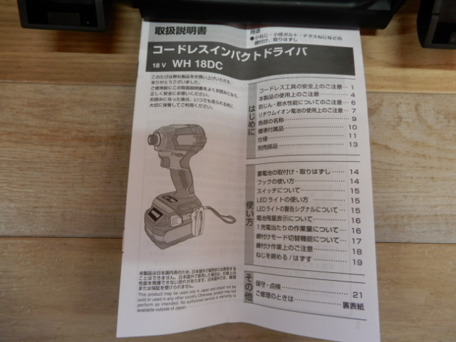 未使用 ① HiKOKI コードレス インパクトドライバ WH18DC ストロングブラック 充電式 ハイコーキ 工具 DIY 激安1円スタート