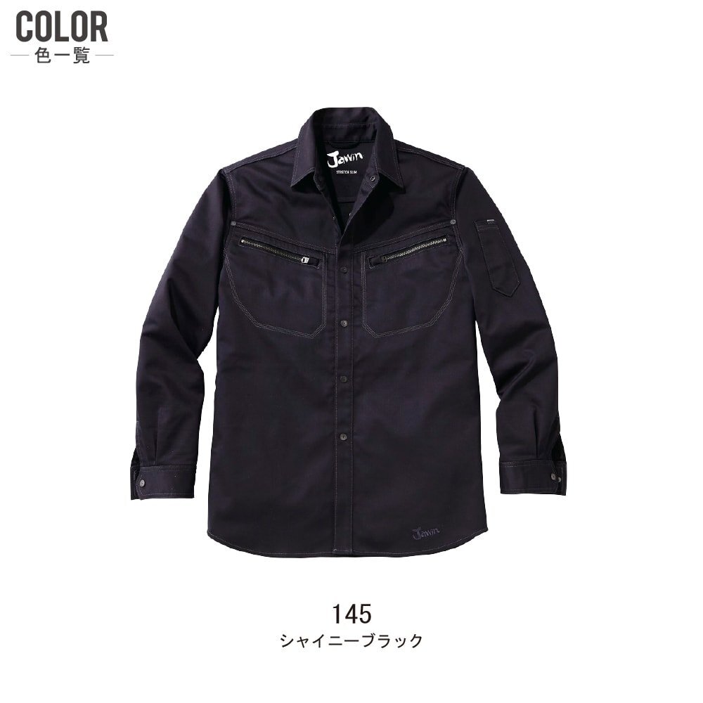 Jawin ジャウィン 秋冬 ストレッチ 長袖 シャツ 抜群の伸縮性 52504 色:シャイニーブラック サイズ:4L ★ 対象2点 送料無料 ★