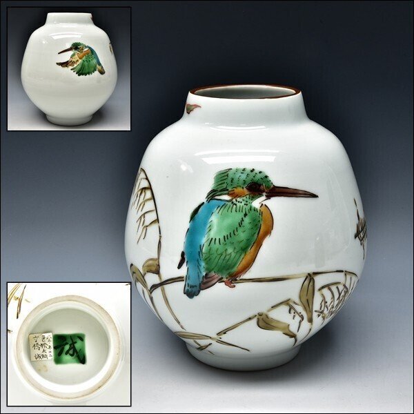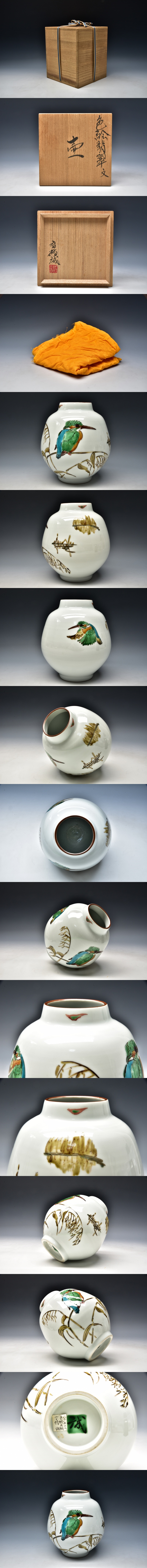 U08921 東京芸大 高橋誠 色絵 翡翠文 壺 共箱 /G311