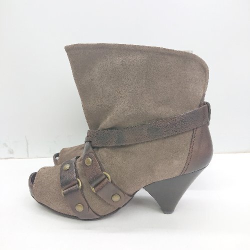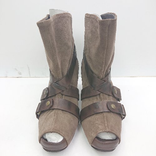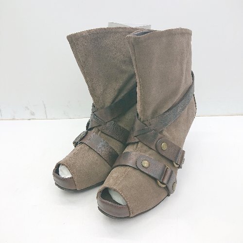 ■ ⊇ ◎ RABOKIGOSHI WORKSEMIKOKAMISHIMA ベルト風装飾 ミドル丈 ヒールブーツ サイズ24 ライトブラウン系 レディース E