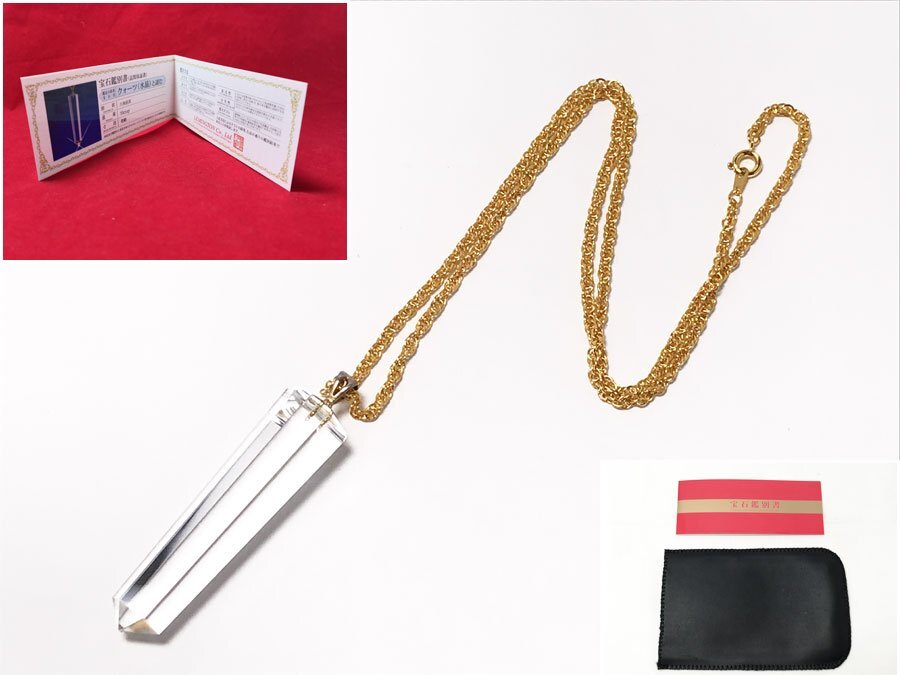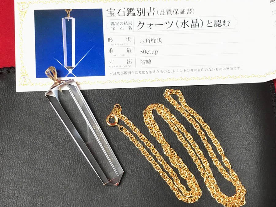◆良品!クォーツ 水晶 50ctup 六角柱状 ペンダント ネックレス クリスタル パワーストーン 天然石 宝石鑑別書・保存袋付き