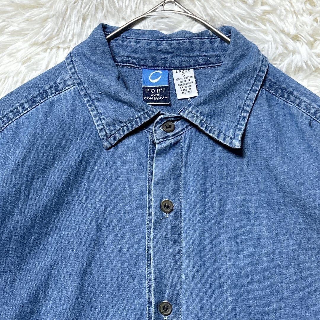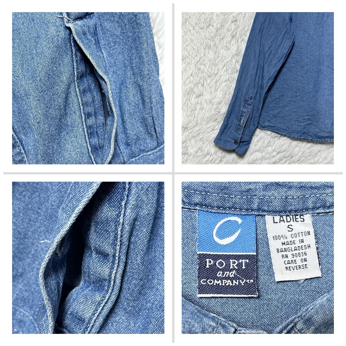 ポートアンドカンパニー ダンガリーシャツ ブラウス 長袖シャツ S デニム 青 ED4DBB