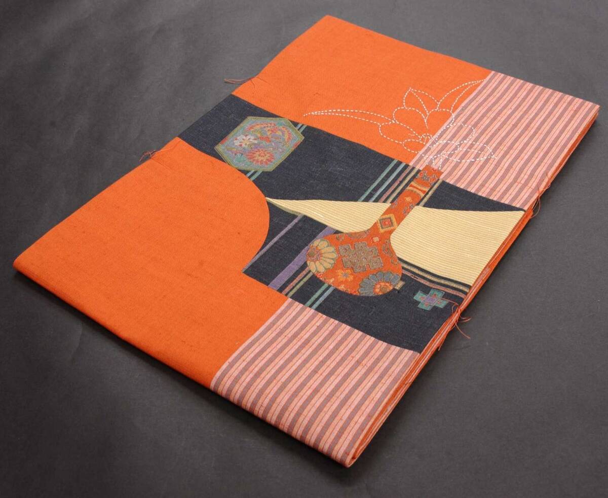 ☆名古屋帯☆パッチワークと刺し子 正絹☆しつけ付未使用