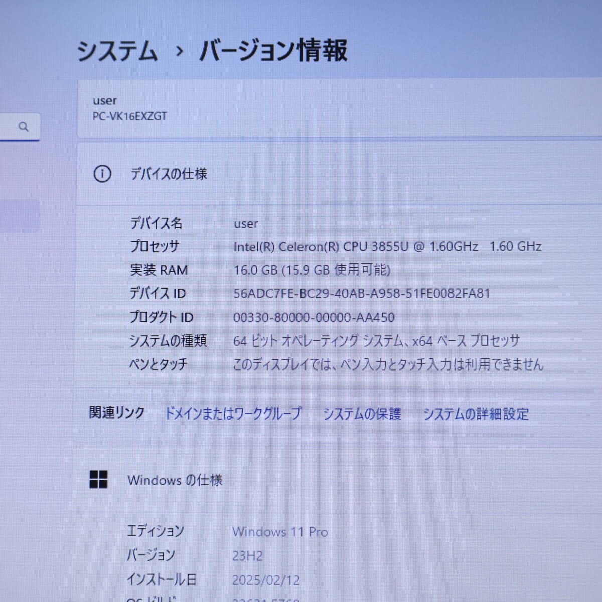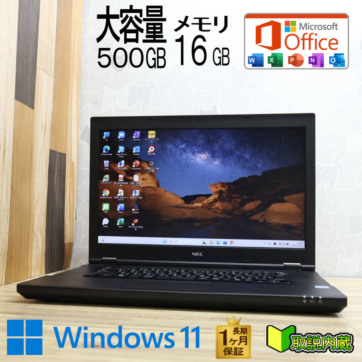 ★超美品 大容量500GB メモリ16GB★VK16EX-T Celeron 3855U Win11 Microsoft Office 2019 Home&Business 中古品 ノートパソコン★P92630