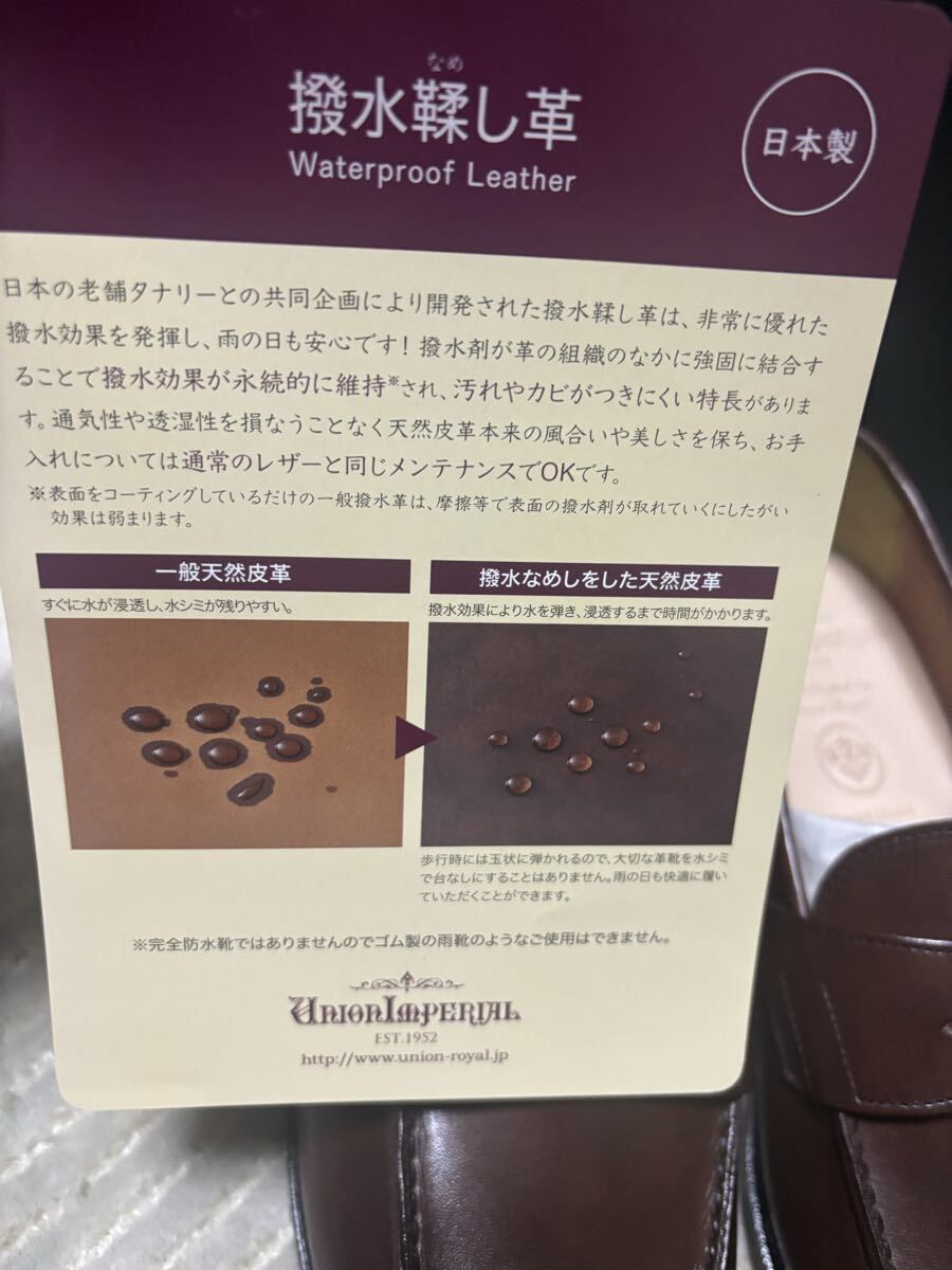 アッパーレザーには日本製の撥水なめし革を使用し雨の日も安心です。撥水剤が革の組織のなかに強固に結合することで撥水効果が永続的に維持され、汚れやカビがつきにくい特長があります。 肌理が細かく艶感のあるレザーはしなやかで堅牢製も高く、長くご愛用いただきたい逸品です。