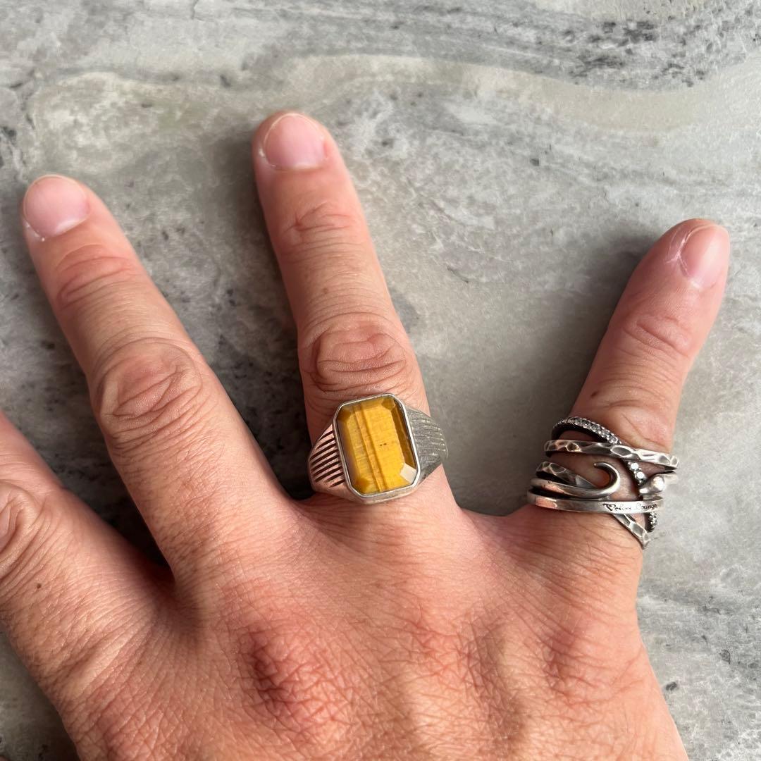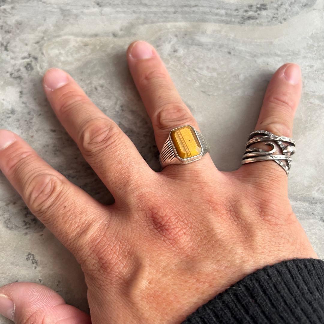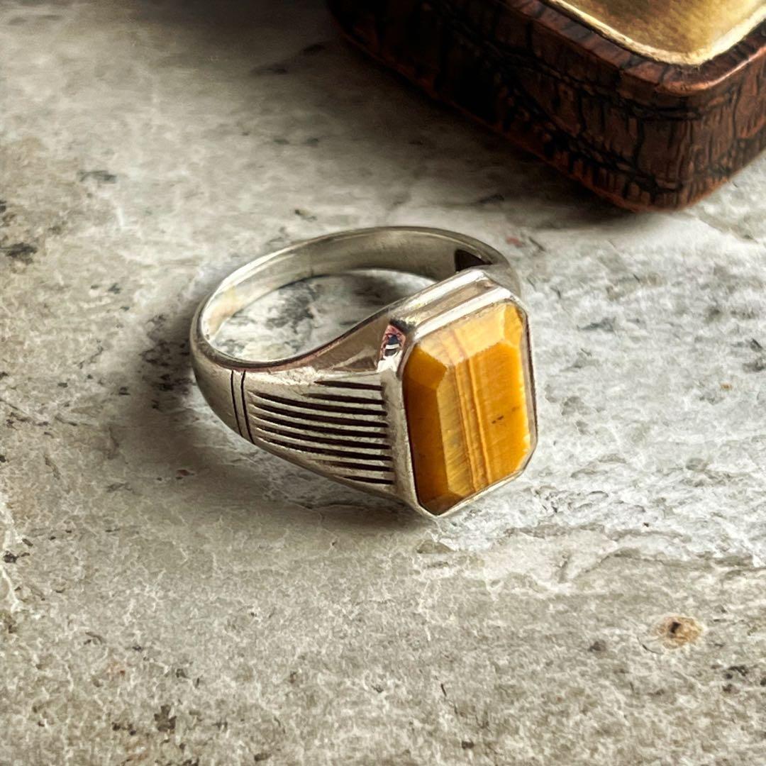 アメリカのヴィンテージ雑貨店で購入したタイガーアイリングになります。