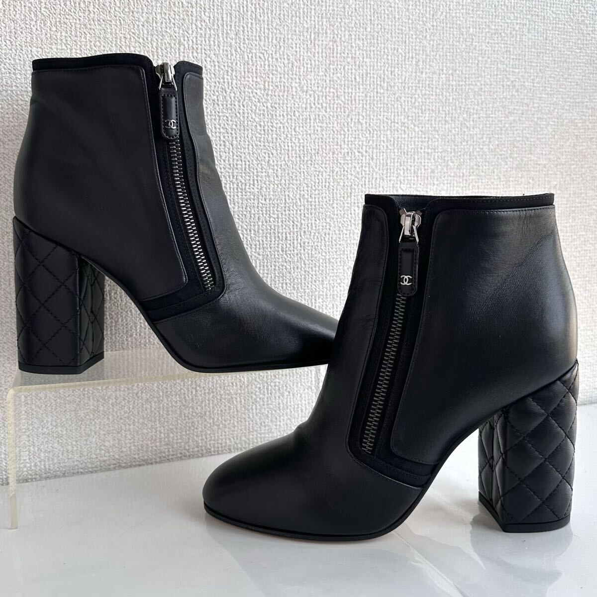 Chanel シャネル ココマーク ブーツ ブーティ 太ヒール キルティング マトラッセ ハイヒール パンプス ショートブーツ ブーティ イタリア製 正規品 レーディス シューズ 靴