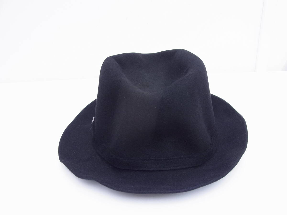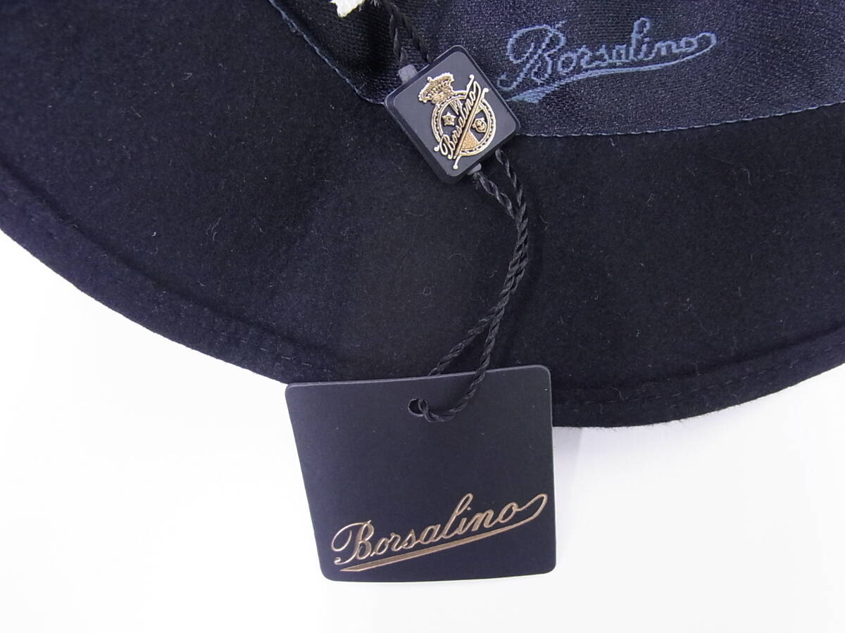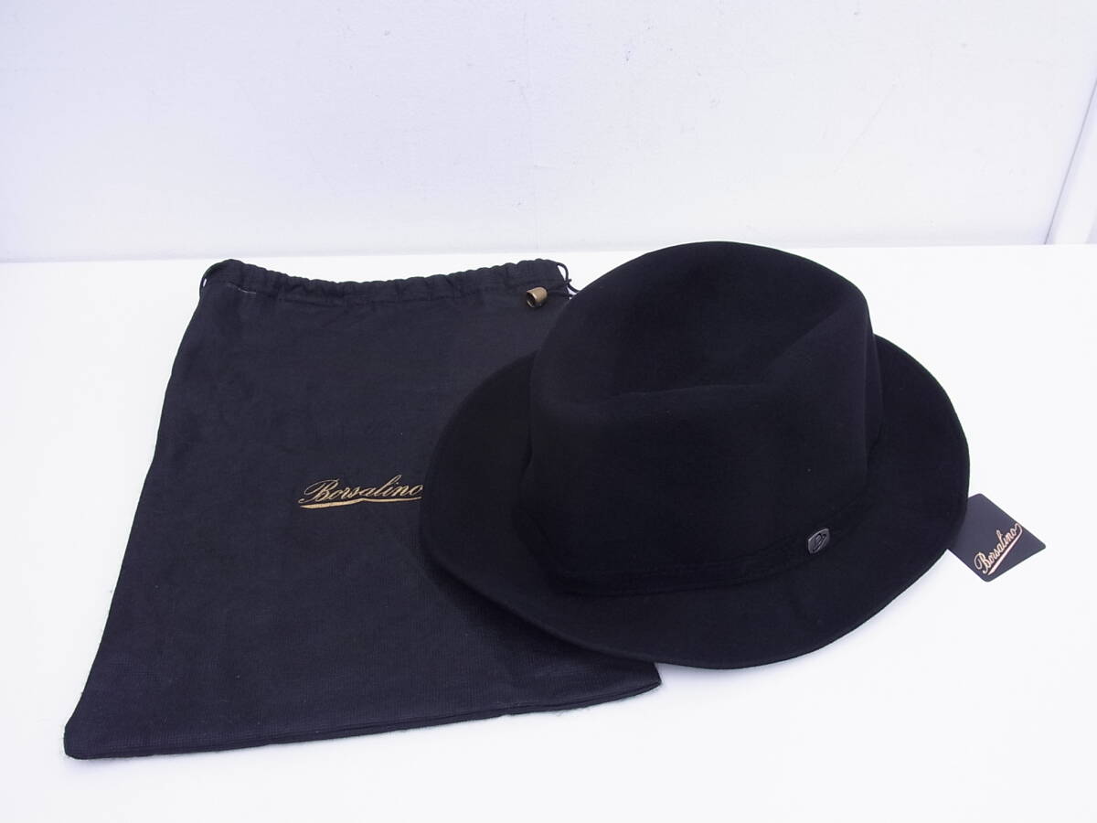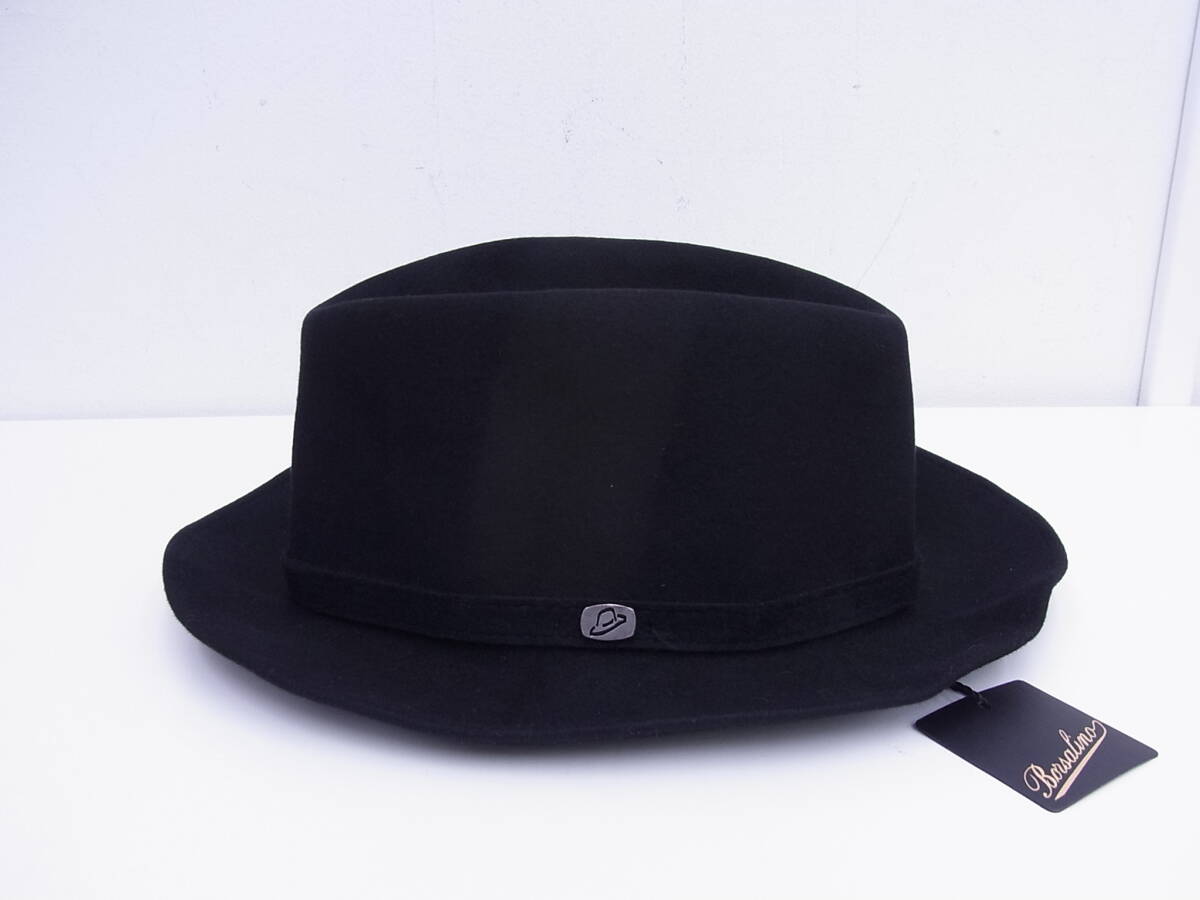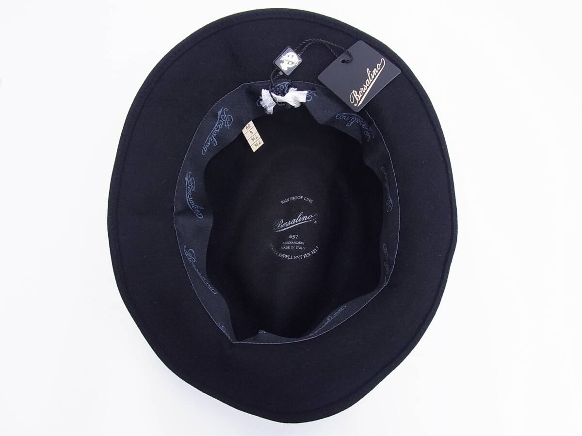ブランド祭 Borsalino ボルサリーノ ローラーハット 中折れ帽 クラウン 無地 ブラック 59cm 6 7 1/4 7 3/8 イタリア製 未使用保管品