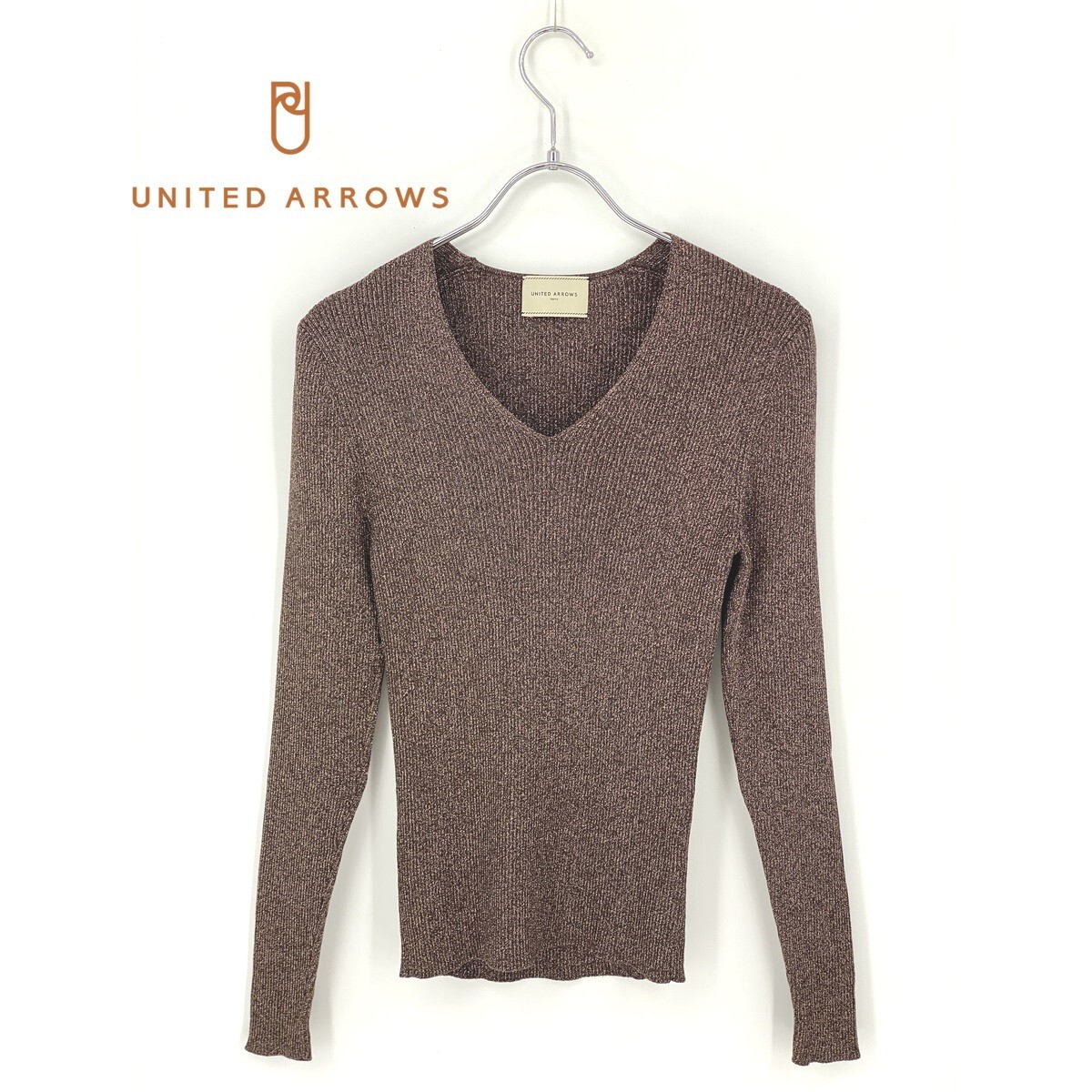 B0378/2枚セット 極美品 UNITED ARROWS ユナイテッドアローズ ウール シルク クルーネック Vネック ニット セーターS程 茶 灰色 レディース
