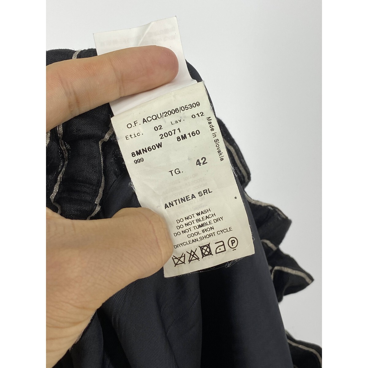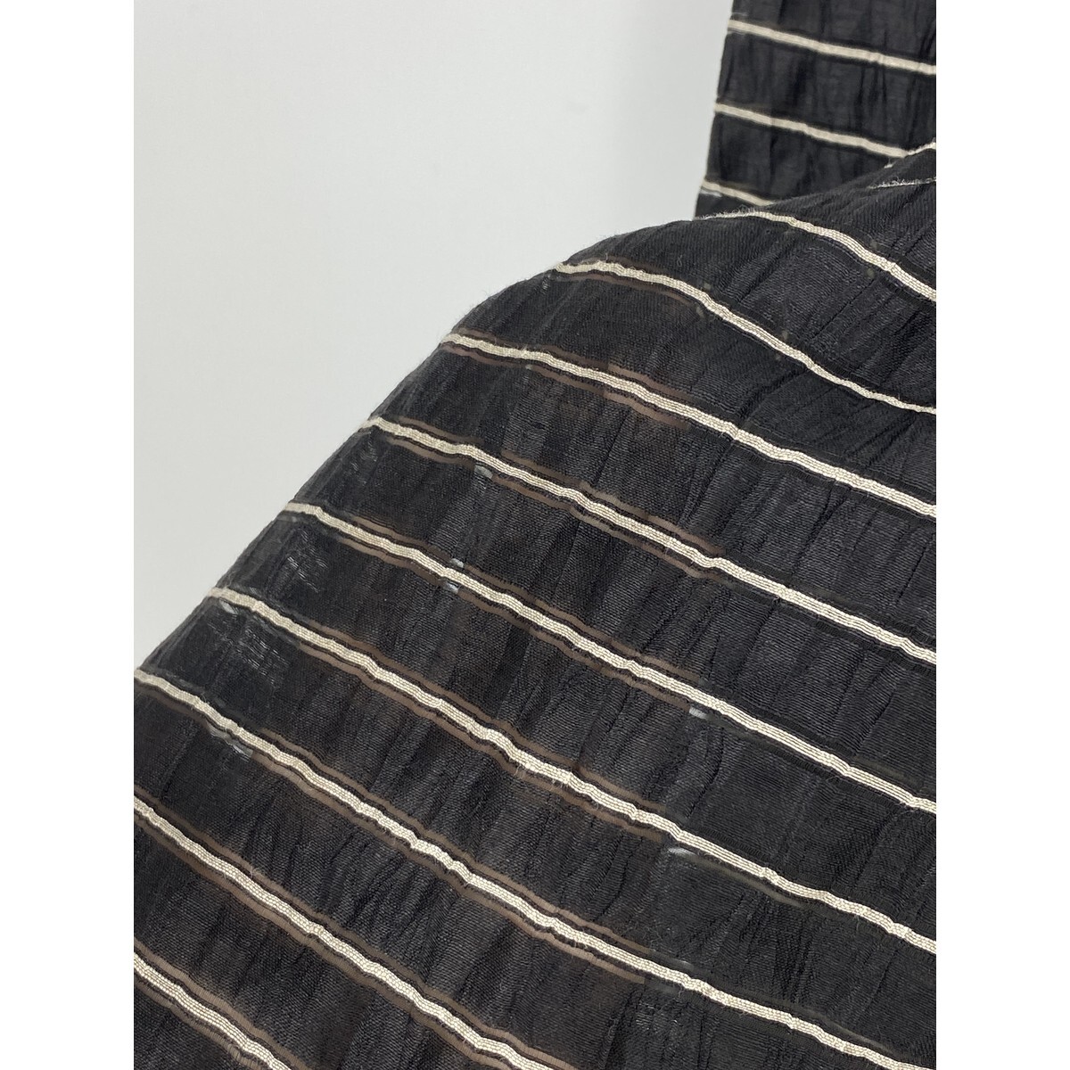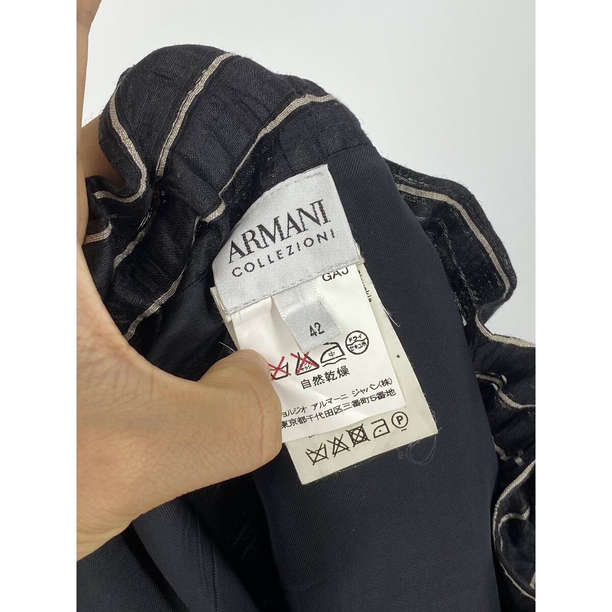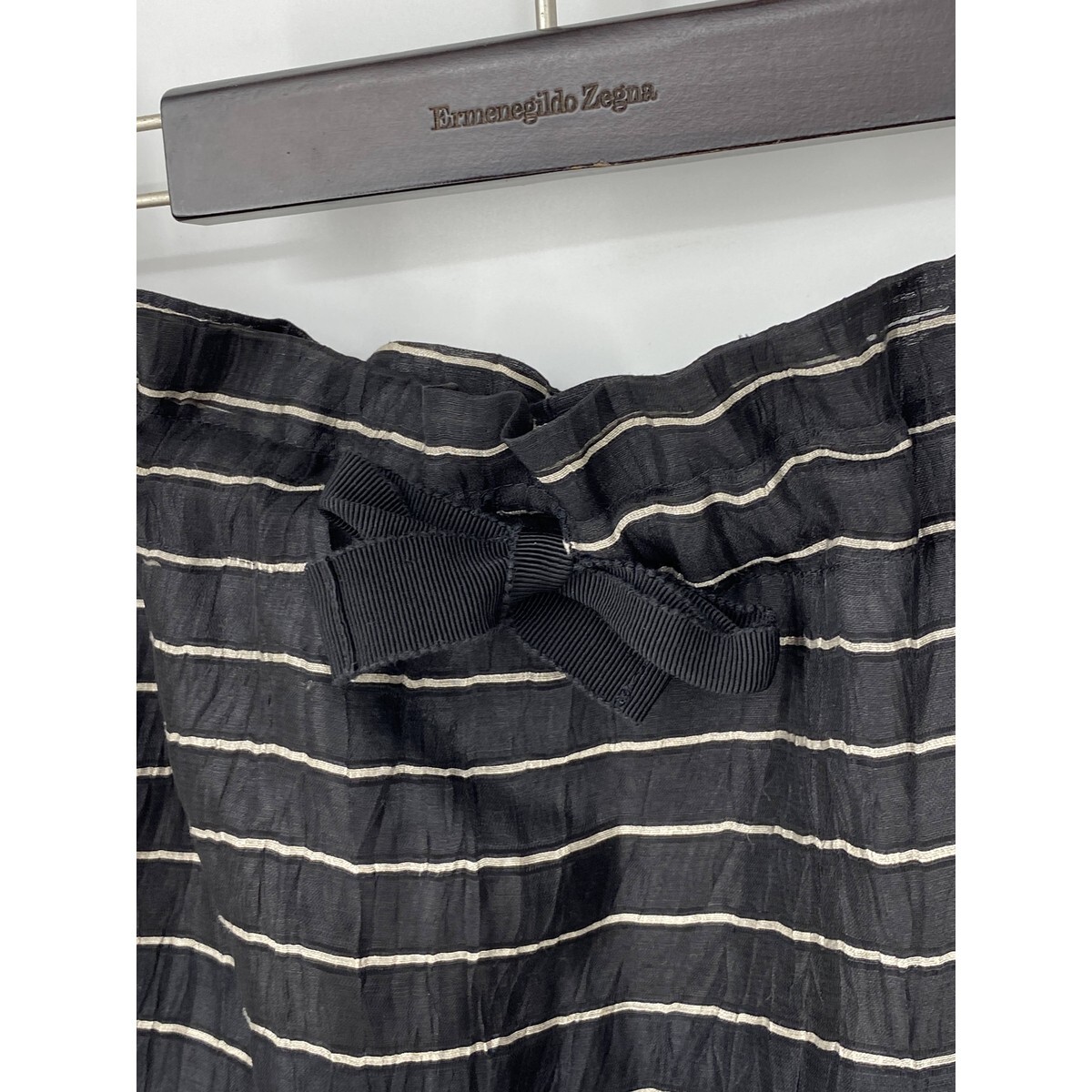 B0326/極美品 ARMANI COLLEZIONI アルマーニ リネン ボーダー 腰紐付き イージー ドロスト ギャザー 膝丈 スカート 42 L 黒 レディース