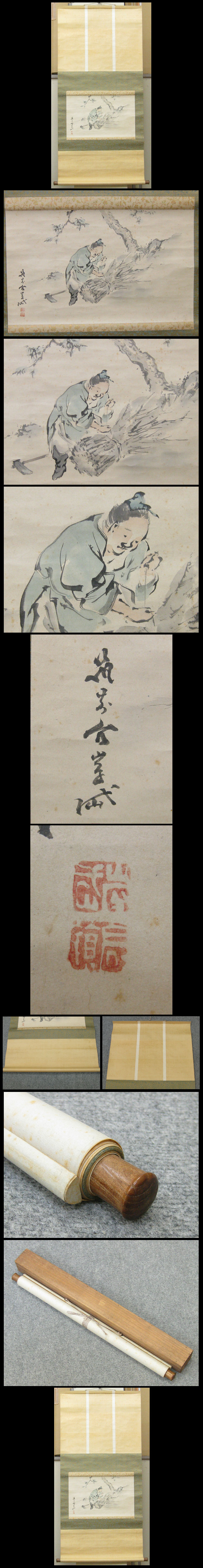 【佐伯岸岱】1782~1865年。 京都に生まれる。本名は国章のち昌岱。字は君鎮。通称太郎。 号は岸岱、虎岳、卓堂、紫水、同功館がある。 岸駒の長男として生まれる。父に師事して岸派の画を継承。 父の没後、岸派2代目として京画壇の代表的な存在となる。 四条派の呉春の画風なども取り入れた金地濃彩の花鳥図や山水図などにも秀でた。 代表作に「富士図」(京都醍醐寺蔵)などがある。1865年没。83歳。 ★商品サイズ★ ■掛軸 122×58cm ■作品 28×46cm ★商品の状態★ 真贋が不明なので模写として出品いたします。 作品・表具共に時代のしみ汚れがあります。 ご承知のうえご入札をお願いします。 時代など詳しくは画像にてよく確認のうえでご検討いただければと思います。 どうぞよろしくお願いいたします。 |