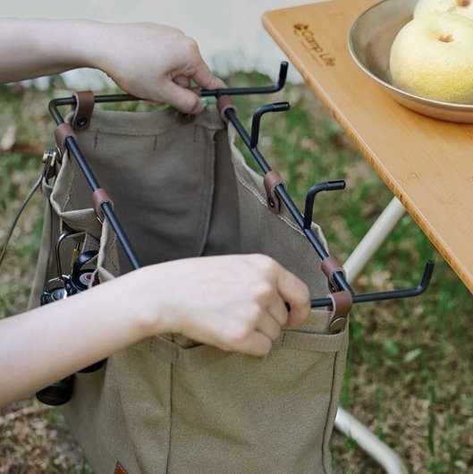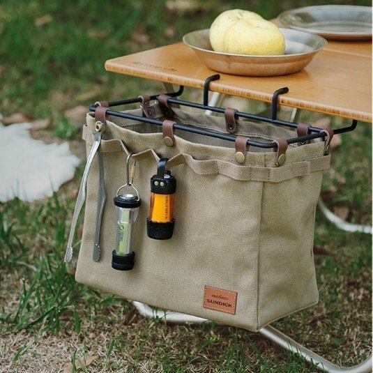 新品 綿帆布製 テーブルサイドバッグ ラック 型崩れしない ゴミ箱 収納 折畳み可能 キャンプ アウトドア バーベキュー