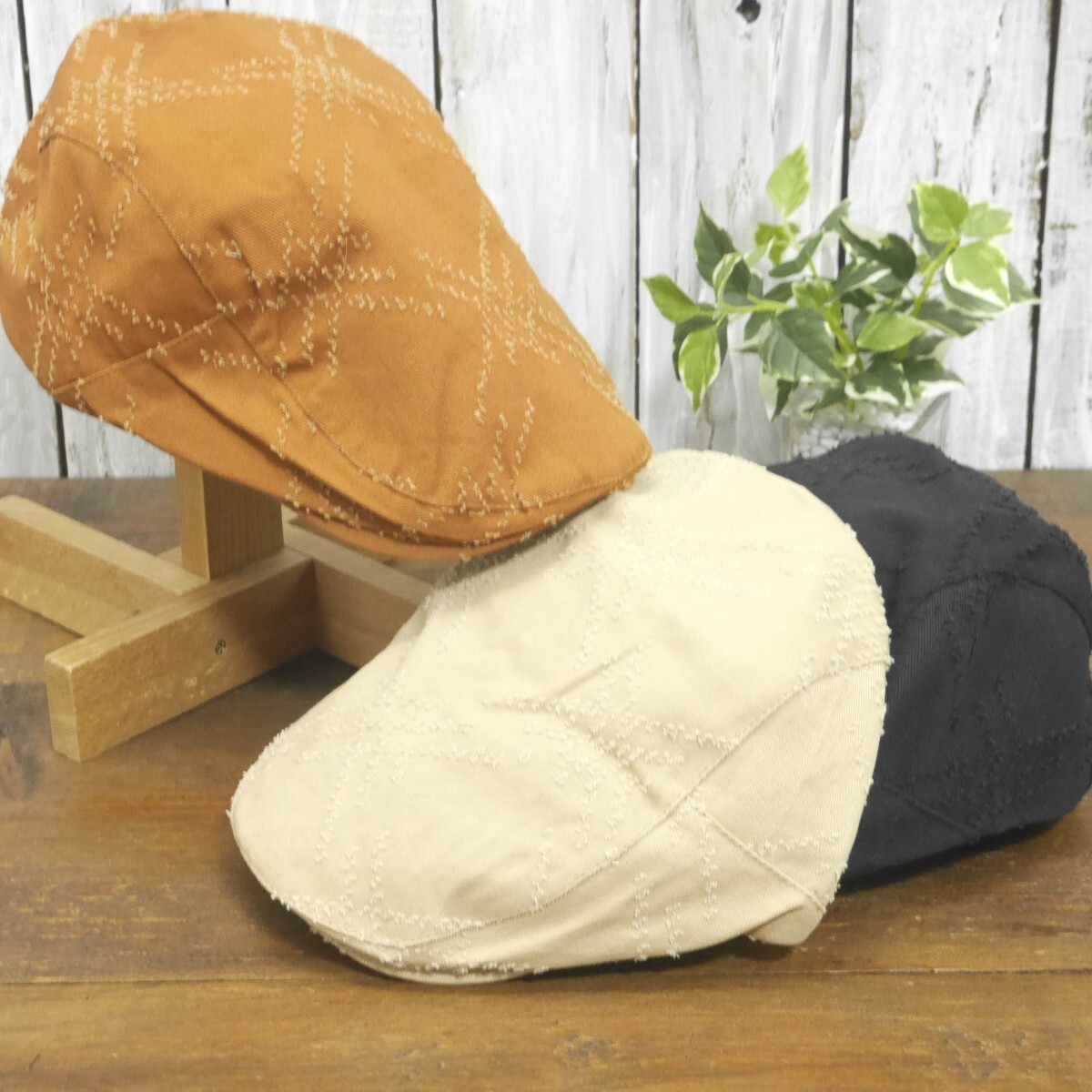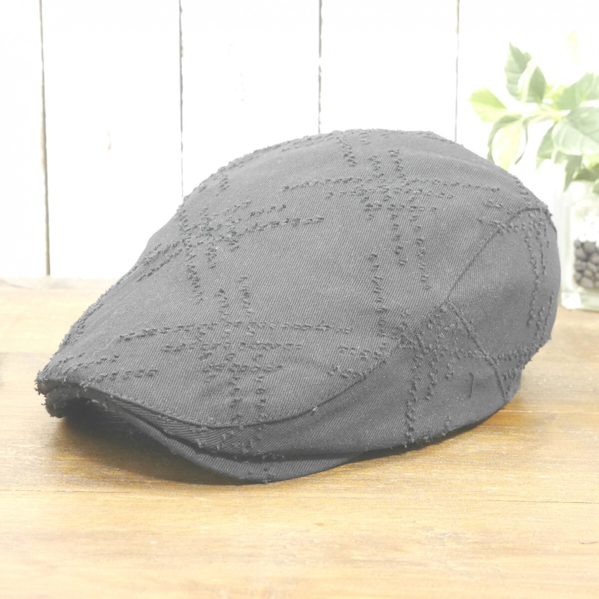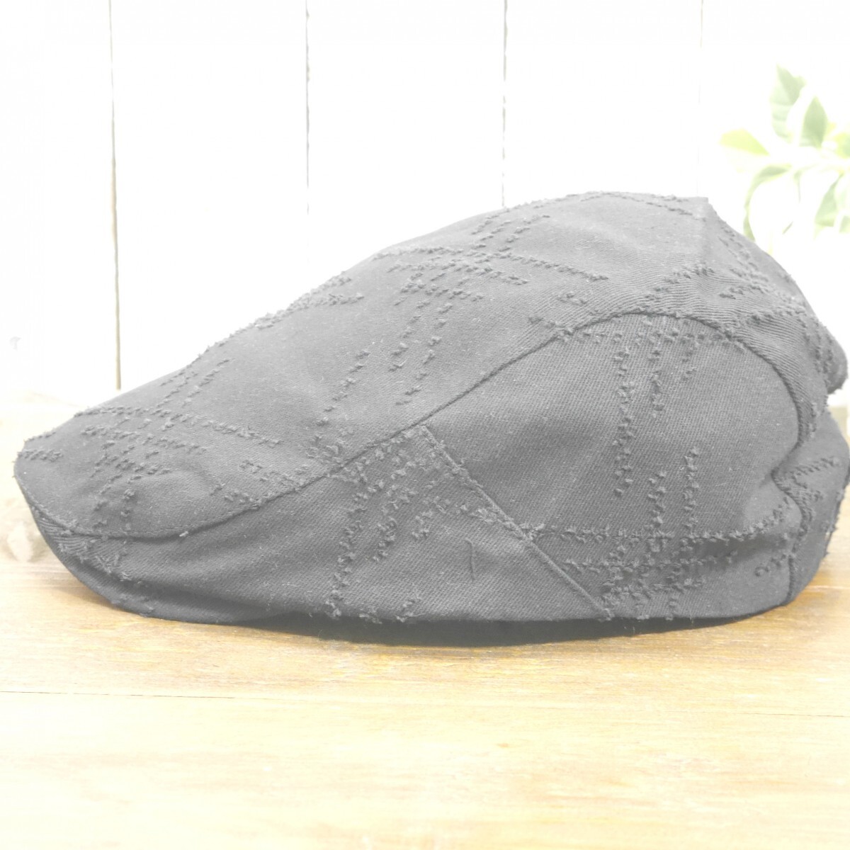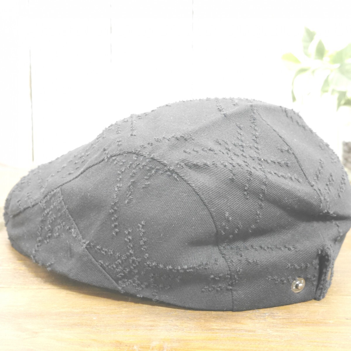 全国一律送料450円 ステッチ 破れ ハンチング ブラック シンプル サイズ調整可 オールシーズンOK 男女兼用