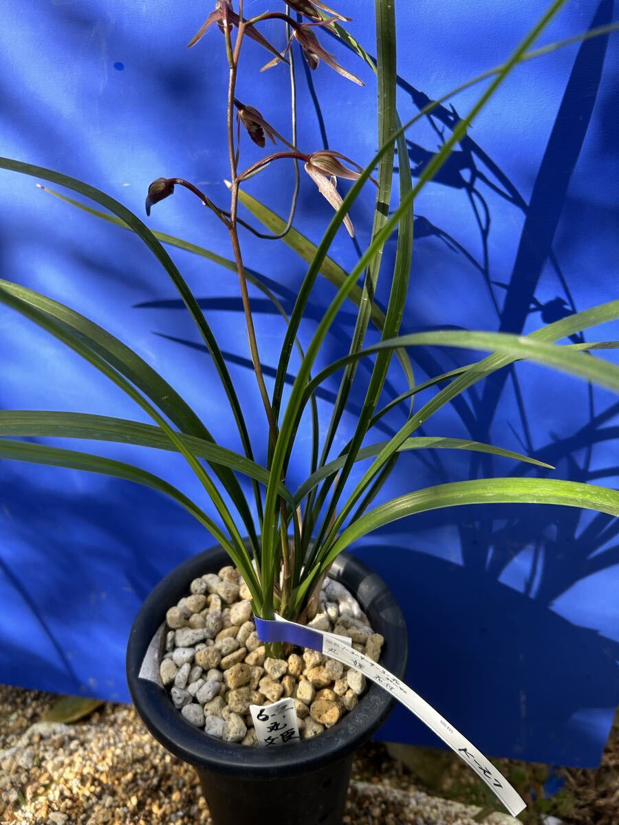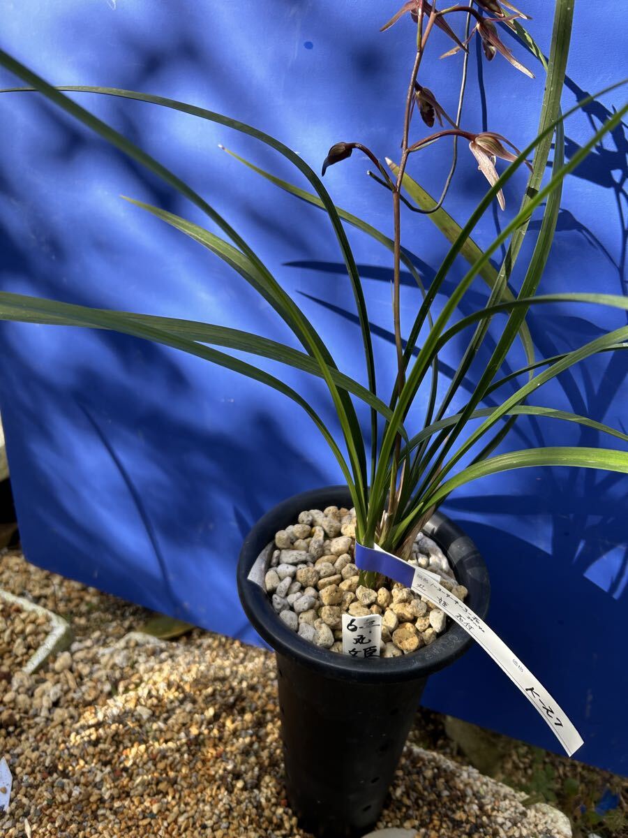栽培増植品、日向寒蘭、登録品、丸姫、花付き、Kー27、は、宮崎県産のサラサベタの登録品で、有名品なので詳細は省きます。苗サイズは、 3 0〜 4 0センチくらいの、 Iー 3ー 4ー 4ー 3の5条立てで今年の新芽が 3枚葉で花付きです。根は保証します。水苔に包んで発送します。