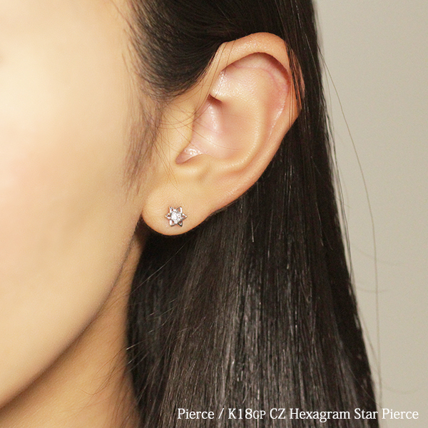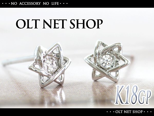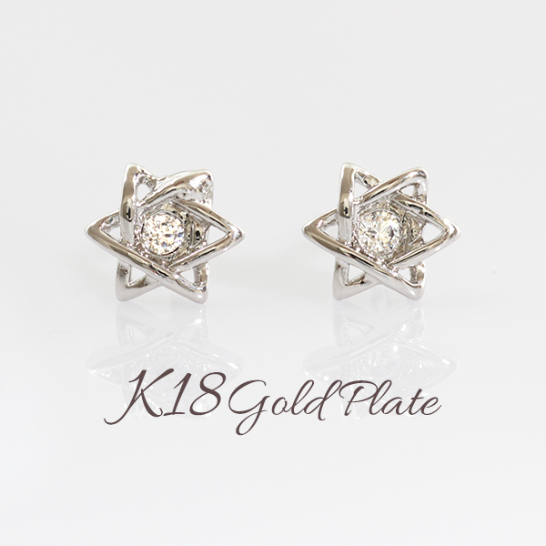 新品/ピアス/K18GP/スター/星/シルバー/18金/レディース/ダイヤ/ホワイトゴールド/両耳/スタッド/女性/シンプル/小さい/CZ/WG