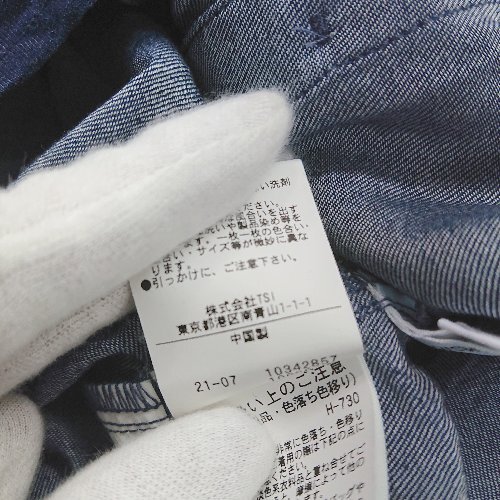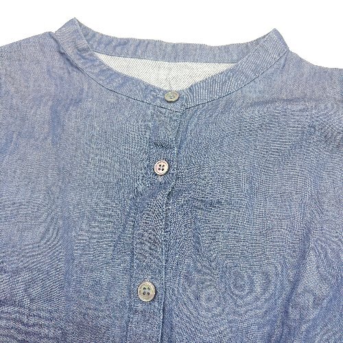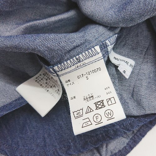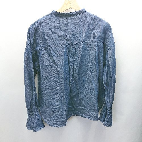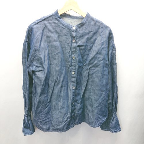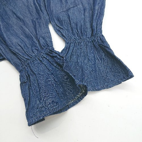 ◇ NATURAL BEAUTY BASIC デニム風 袖フリル 長袖 シャツ サイズS インディゴ レディース E